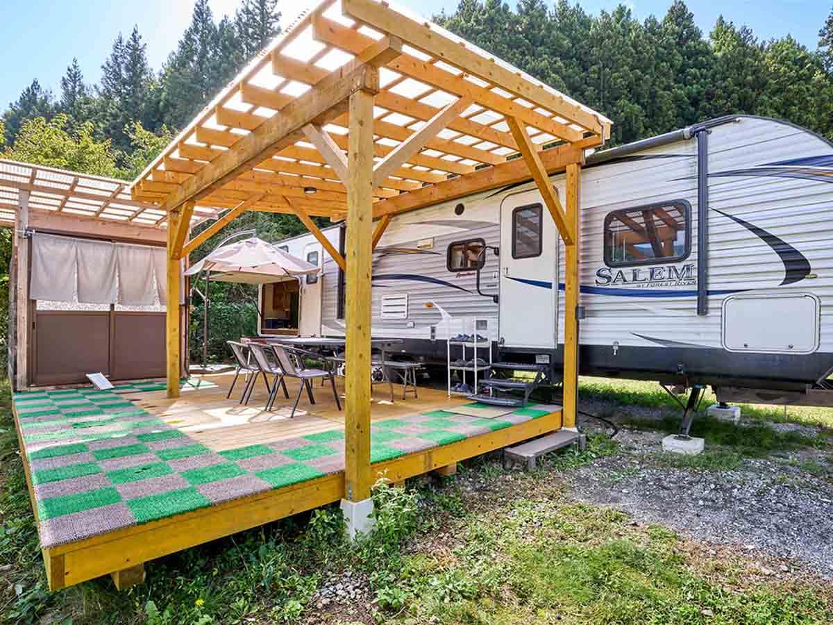 バリアフリーで1組限定のトレーラーハウスとテント
