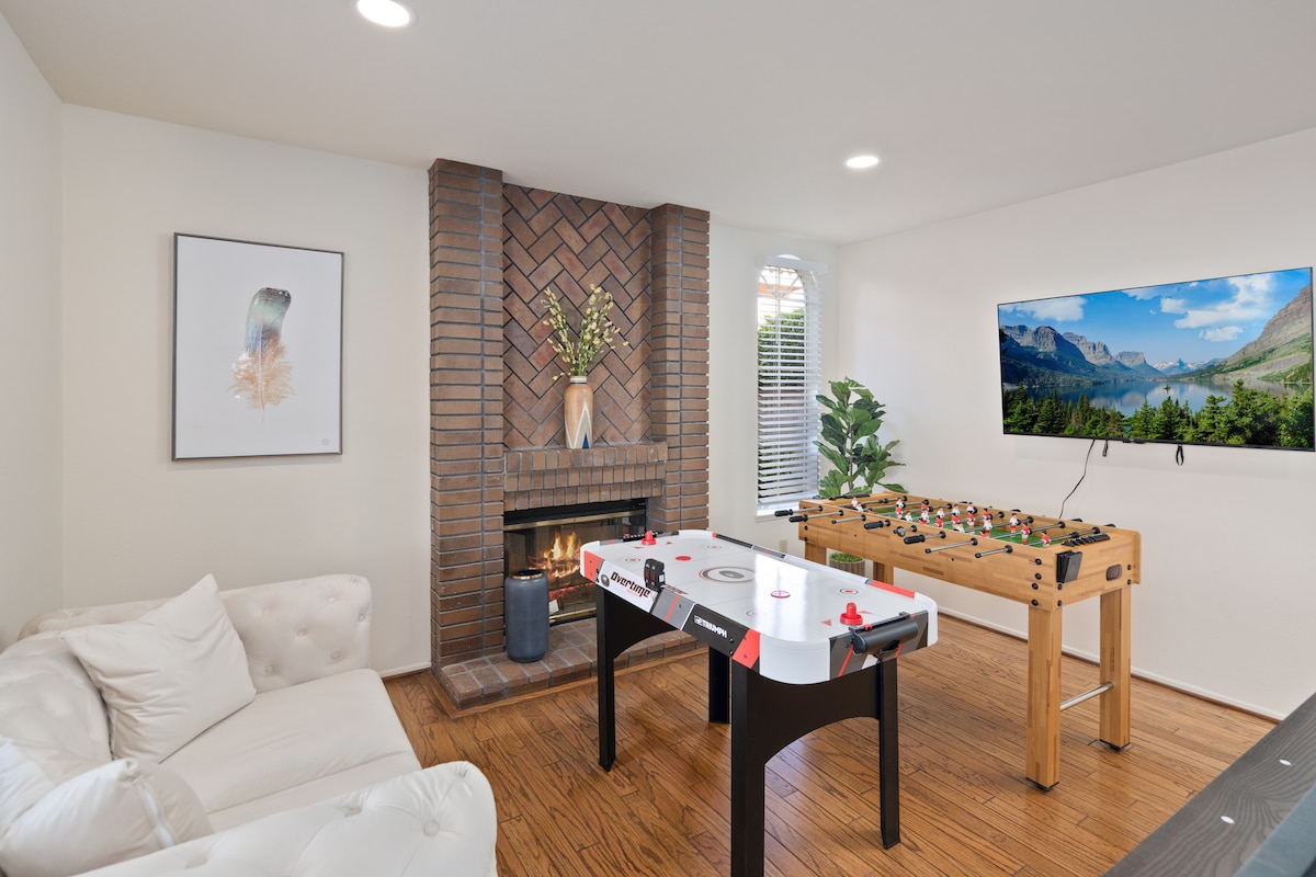 ¡Sin tarifas ocultas, sin tareas adicionales requeridas, más servicios gratuitos para ti y tu familia! Disfruta de una casa verdaderamente americana en el corazón de Placentia, donde todos los vecinos saben tu nombre. ¡Durante el verano, la familia puede mantenerse fresca en el interior con juegos de arcade retro o un cóctel alcohólico de cortesía! Durante el invierno, disfruta de una noche al aire libre en el patio con una chimenea privada y tres lámparas de calefacción alrededor de la mesa de comedor al aire libre o date un chapuzón en la piscina climatizada a 82 grados.
