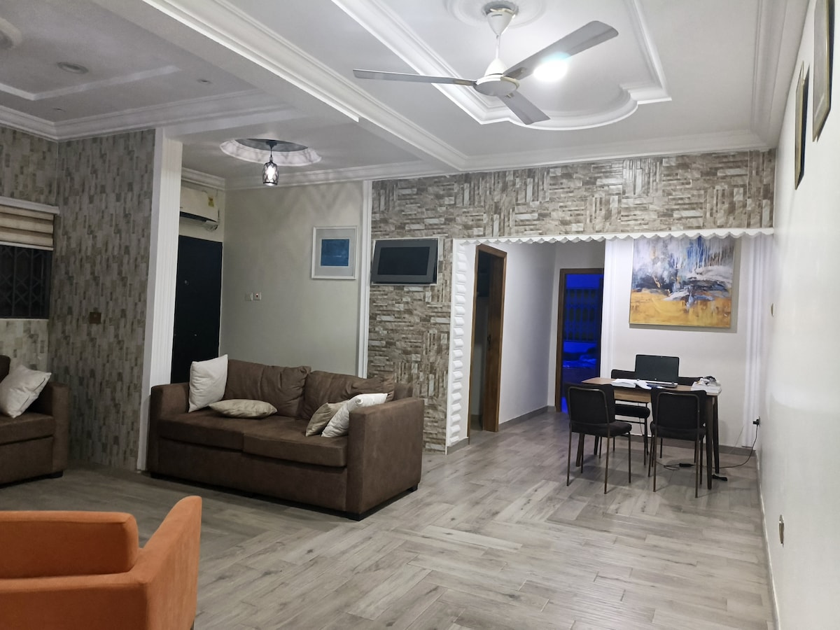 ¡Te damos la bienvenida a una experiencia única! Si estás buscando un lugar hermoso con un toque de lujo, algo inteligente y elegante, con un impresionante jardín, piscina, jacuzzi y gimnasio, no busques más. ¡Este es el lugar perfecto para ti! Nuestro departamento está idealmente situado, al alcance de las mejores atracciones de Accra. Estamos a solo 25 minutos del centro comercial Accra, a 10 minutos del centro comercial Achimota, y se puede llegar a la playa en solo 30 minutos. Somos fácilmente accesibles desde el aeropuerto, a solo 11 km de distancia.