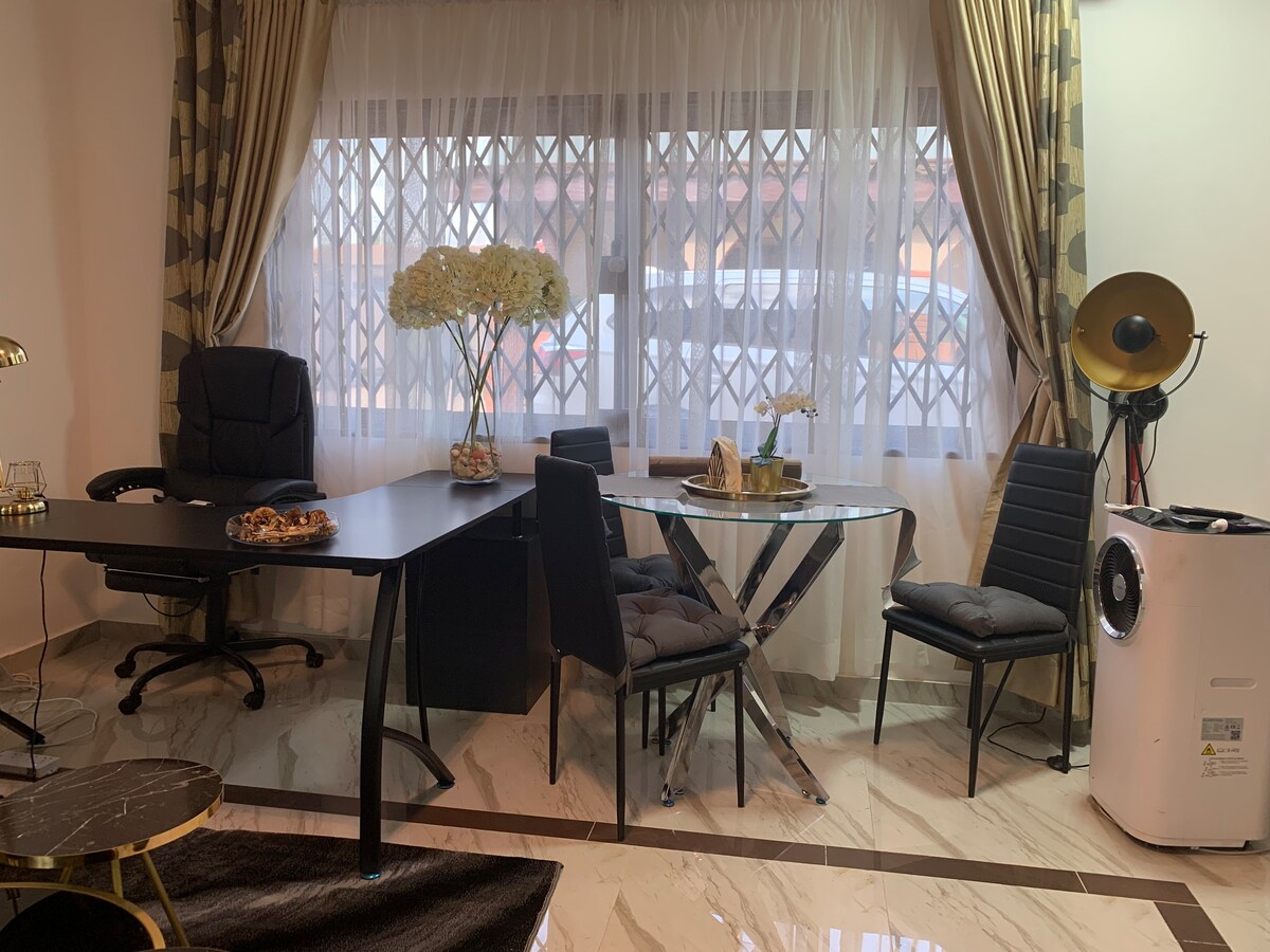 Located at “Rash Comfy Apartments” on google maps. * Unbeatable location (Easy access to Achimota Mall and airport) * In-house pharmacist available for first aid. * Suited for Individual or group trips. * Spacious bedrooms ensuite, fitted with Super King-sized beds. * Work from home using high speed 24/7 WIFI. * Refrigerator, Fully furnished kitchen for long stay guests. * Cleaning services included.