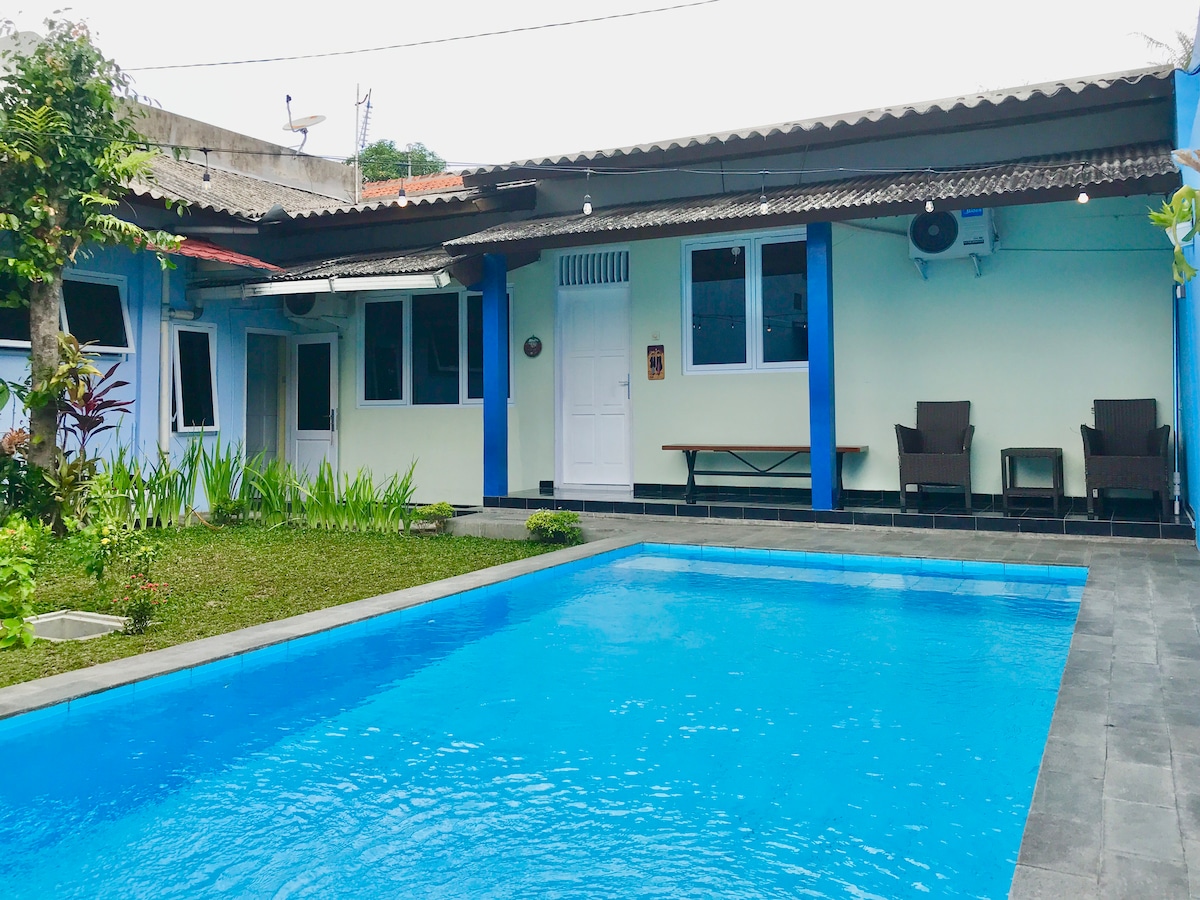 🏡 Villa privada: alquiler de la propiedad completa El precio que se muestra es para toda la villa, no por habitación. Durante tu estadía, toda la propiedad es exclusivamente tuya: no va a haber otros huéspedes. Con 8 amplios dormitorios, una gran piscina de 15x9 y 1400 m² de espacio habitable, puede alojar cómodamente hasta 20 huéspedes. A solo 3 km de la ciudad y a 20 minutos del centro de Yogyakarta, es perfecto para familias, amigos o retiros, rodeado de paz y comodidad tropicales. 🌴✨