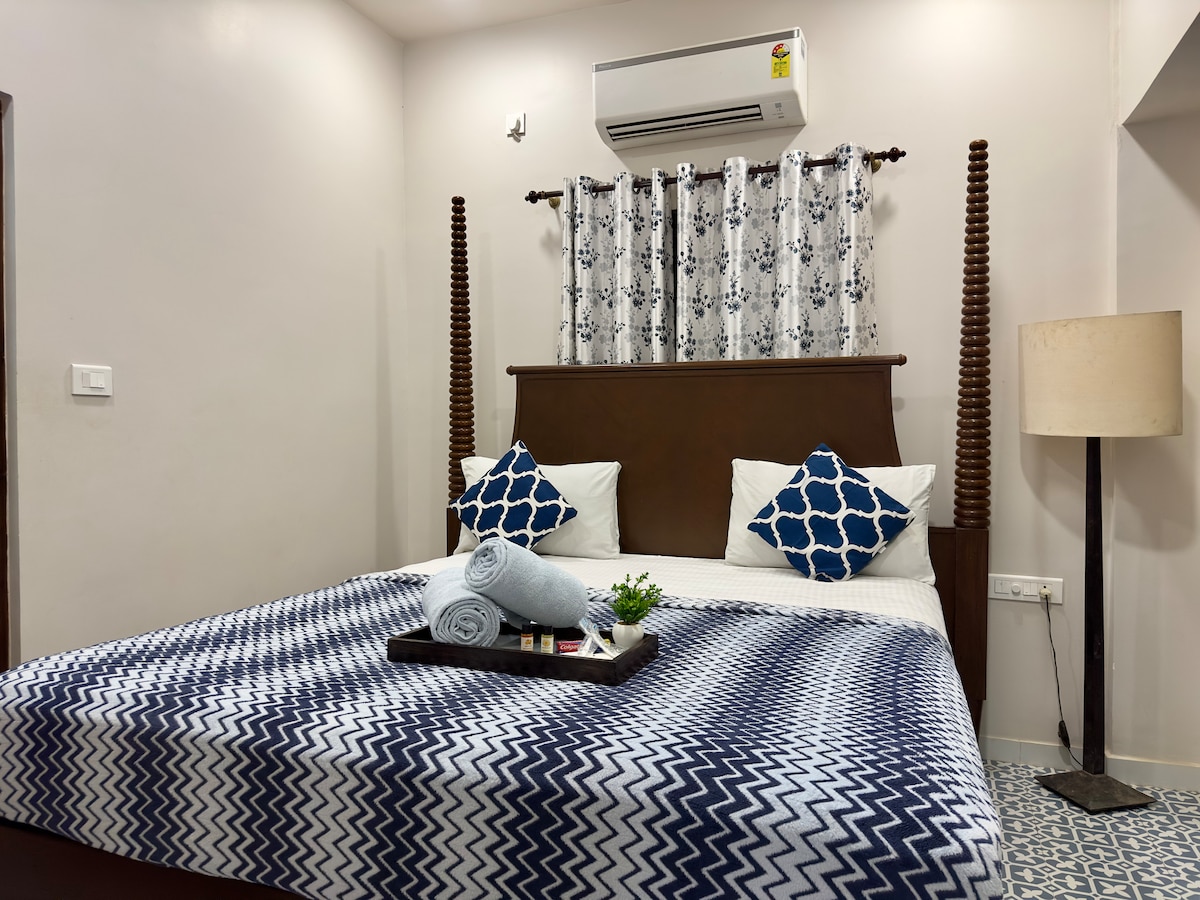 Nuestro apartamento de lujo de 2 dormitorios totalmente climatizado puede alojar cómodamente hasta 4 huéspedes. Tiene una cocina totalmente equipada, mucha agua caliente/fría y 2 baños completos. Ubicado en un pueblo sereno con un punto de observación de aves que está a la vuelta de la esquina, una hermosa playa a 10 a 15 minutos a pie, buenos restaurantes y un mini mercado también están muy cerca. El aeropuerto internacional, las estaciones de autobús y tren que están muy cerca hacen que nuestro alojamiento sea perfecto para relajarse y disfrutar de su estancia en Goa.