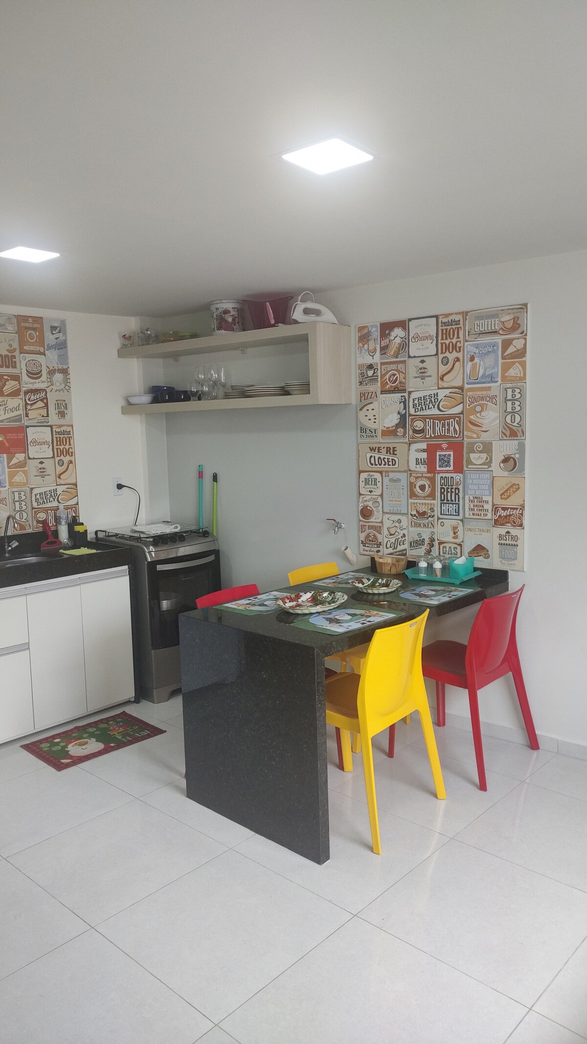 ¡Sabés ese lugar que está cerca de todo! Este es el departamento. Dos mercados cercanos, panaderías, farmacias y a 5 minutos a pie de la Av. Santo Antônio y el centro comercial de la ciudad. Aparte de la comodidad de estar en un ambiente agradable y tranquilo. El departamento tiene cocina, living, baño, 2 dormitorios, uno de los cuales es una suite, y sábanas limpias. (ofrecemos sábanas, almohadas y mantas) las toallas son responsabilidad de los huéspedes). Excelente relación calidad-precio y cerca de todo.