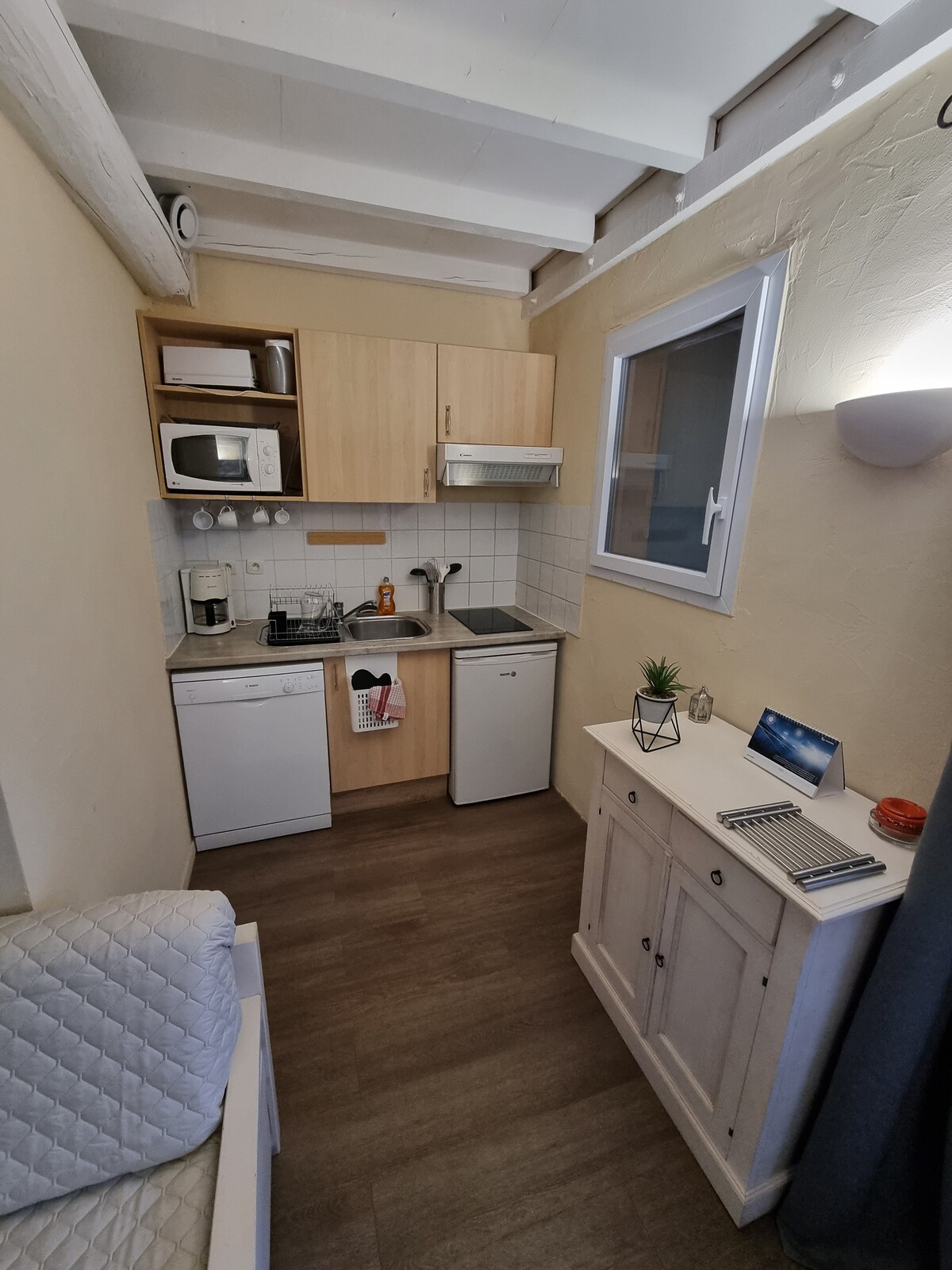 Estudio independiente en casa de pueblo. Agradable estudio de unos 20 m². Ofrecemos una cama de 140 cm, un baño, una cocina recién equipada, una zona de descanso con dos sillones y una mesa de centro para el café, la lectura, etc. Alignan es un pequeño pueblo idealmente situado a 8 minutos de Pezenas, a 20 minutos de Béziers, a 20-25 minutos de las playas, a 10 minutos de la autopista y a 45 minutos de Montpellier. El pueblo tiene todas las comodidades y es muy activo culturalmente.