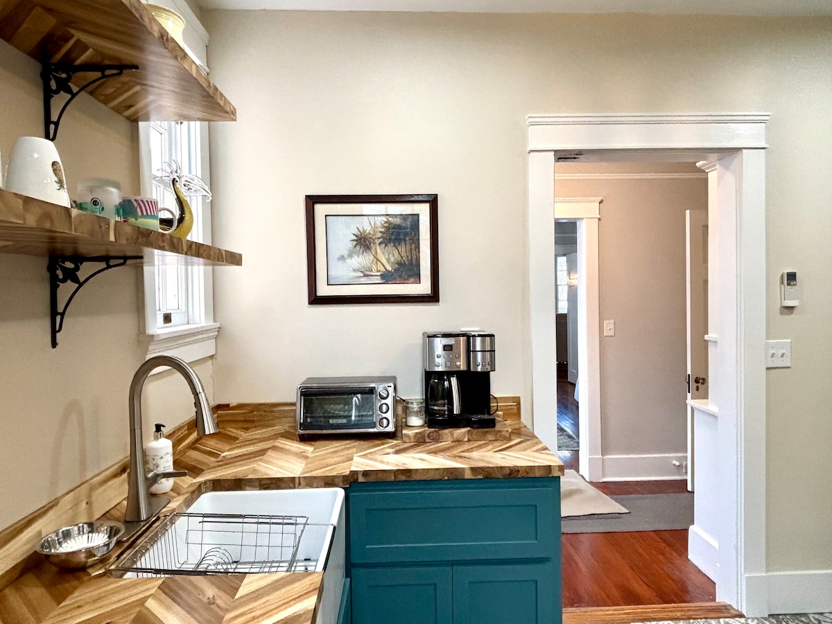 ¡Unidad luminosa y espaciosa, colorida y acogedora y súper limpia en el corazón de Uptown de Nueva Orleans! ¡Toda la unidad de la primera planta (baja) a solo dos cuadras de la línea de tranvía histórica de St. Charles Avenue y Napoleon Ave bordeada de árboles de roble! Se puede llegar a pie a numerosos restaurantes, bares, cafeterías y un increíble mercado de vinos, todo a 5 minutos a pie. ¡Barrio Francés, Garden District, universidades y Audubon a 10-15 minutos en auto o tranquilamente en tranvía!