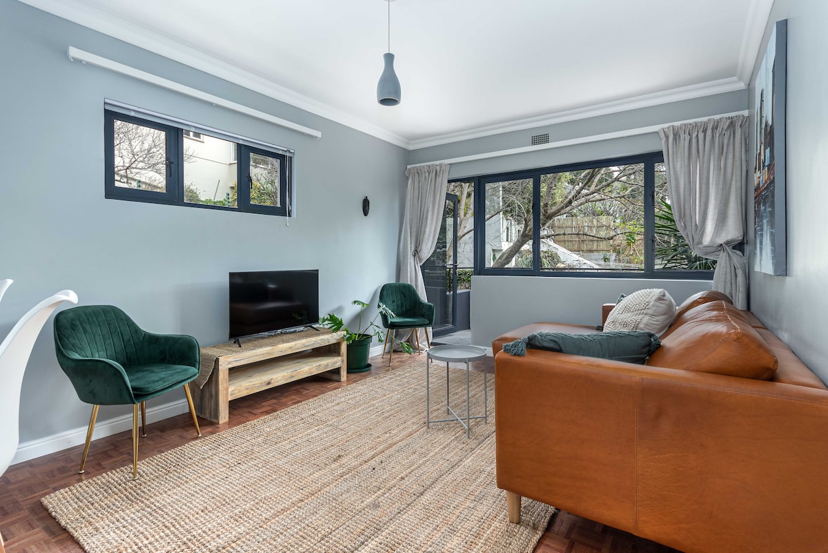 *Destacado en las revistas Real Simple y Home* De vuelta en Airbnb después de una renovación completa de 4 meses. Apartamento espacioso e inmaculado, bellamente y eclécticamente decorado, en una de las zonas más buscadas de Ciudad del Cabo. Totalmente amueblado y seguro, con todos los servicios para garantizar una estancia cómoda. Vistas panorámicas de la ciudad y del paseo marítimo. Cerca de las principales atracciones: a 2 minutos a pie de Kloof St (bares, cafeterías y restaurantes populares); a 5 minutos en coche de las playas de Camps Bay y Clifton; a 3 minutos en coche de Lions Head y Table Mountain.