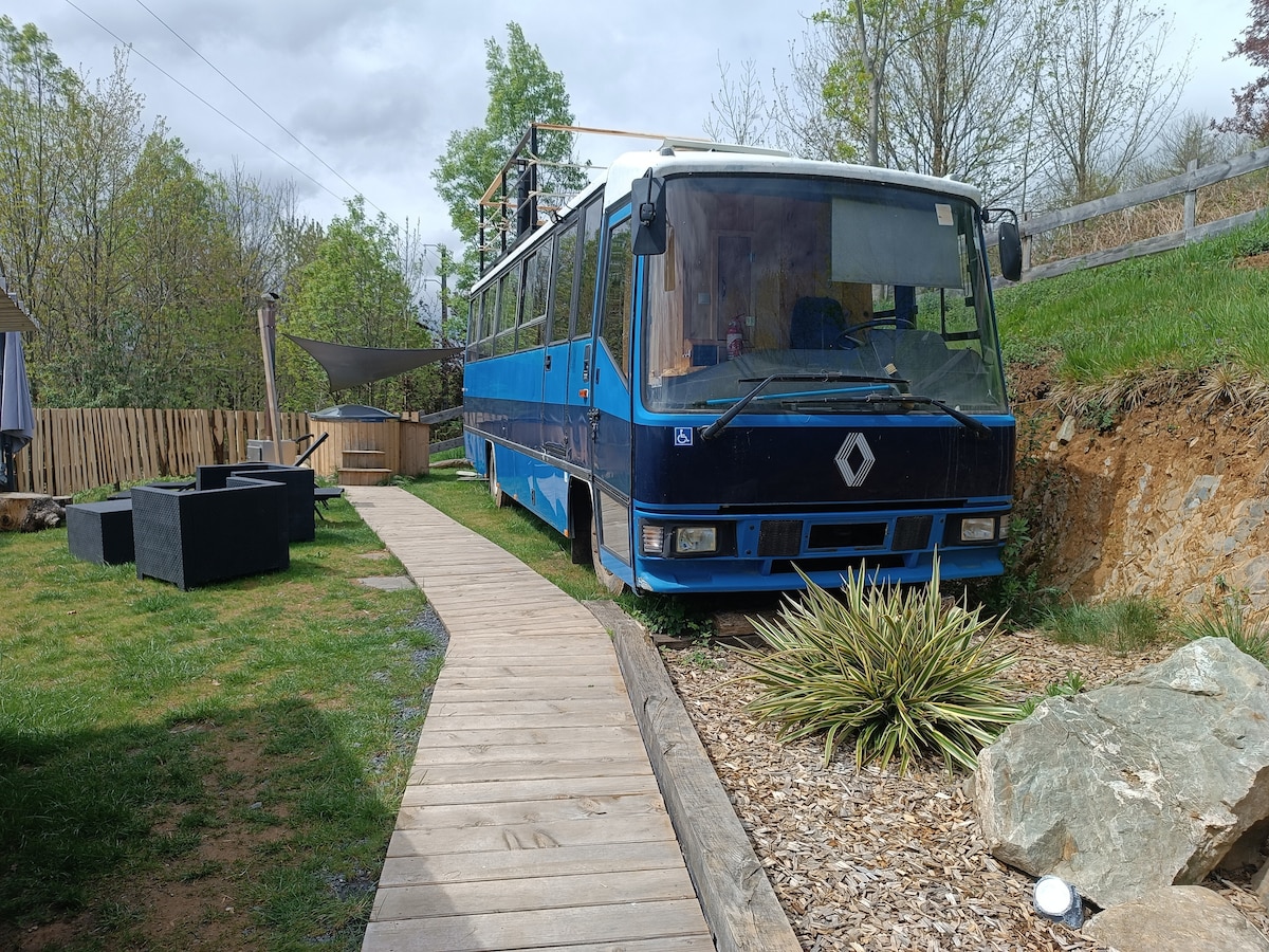 Venga a disfrutar de una escapada inusual en este paraíso verde y atípico con vistas a los Pirineos y a la ciudad de Lourdes. El autobús ha sido acondicionado con un espíritu cálido y acogedor. Hay una cama de 140x200, una cocina con fogones, fregadero, nevera, una estufa y un baño con ducha e inodoro. Puede disfrutar del baño nórdico con un suplemento de 40 € al día, pero también de los masajes en L'Empreinte de Joy. Se accede al autobús por un pequeño sendero 🌲