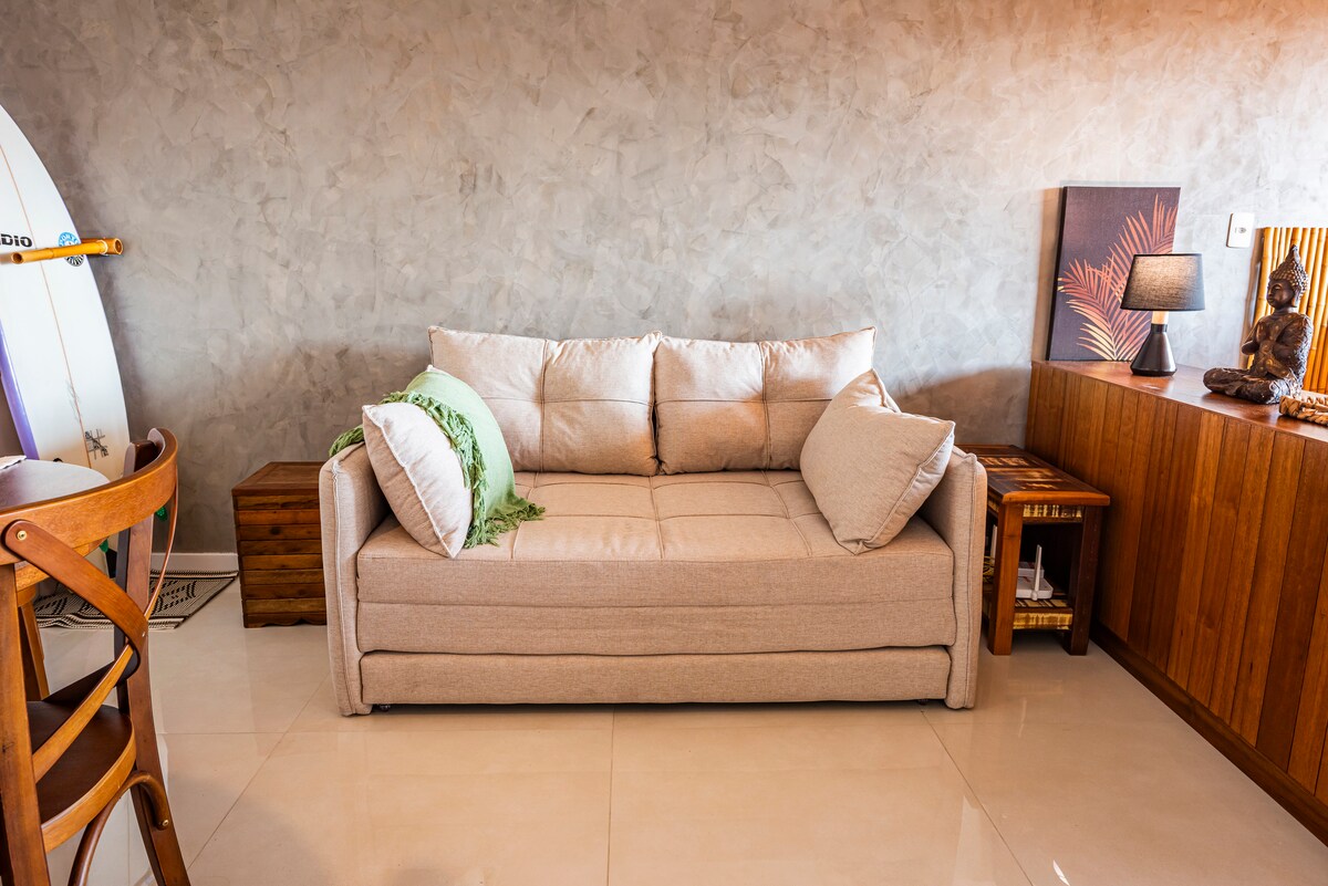 El estudio Maré Alta combina diseño contemporáneo, comodidad y vistas impresionantes al mar de Praia da Vila. El espacio fue diseñado para ofrecer practicidad, comodidad y un aspecto único, ideal para parejas y viajeros que buscan una estadía moderna en Imbituba. Ubicado en The One Tower, uno de los desarrollos más completos de la ciudad, el estudio ofrece una estructura premium, fácil acceso a la playa, así como proximidad a supermercados, cafés y restaurantes.