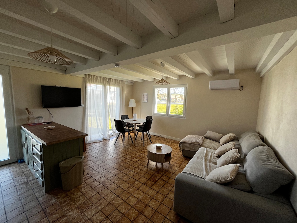 Venez profitez du Lac d'Arjuzanx, de sa réserve naturelle et de sa base de loisirs (à 7km), de l'océan (à 45 min) et des nombreux chemins pour balade et VTT. Dans une petite maison neuve jumelée d'un côté avec notre résidence (accès et jardinet clos indépendants) vous profiterez d'une chambre avec un lit de 160 et d'une cuisine équipée donnant sur une grande terrasse en bois, un jardinet et un abri couvert prolonge l'extérieur. Dans le salon une banquette lit permet un couchage pour 1 ou 2 pers.