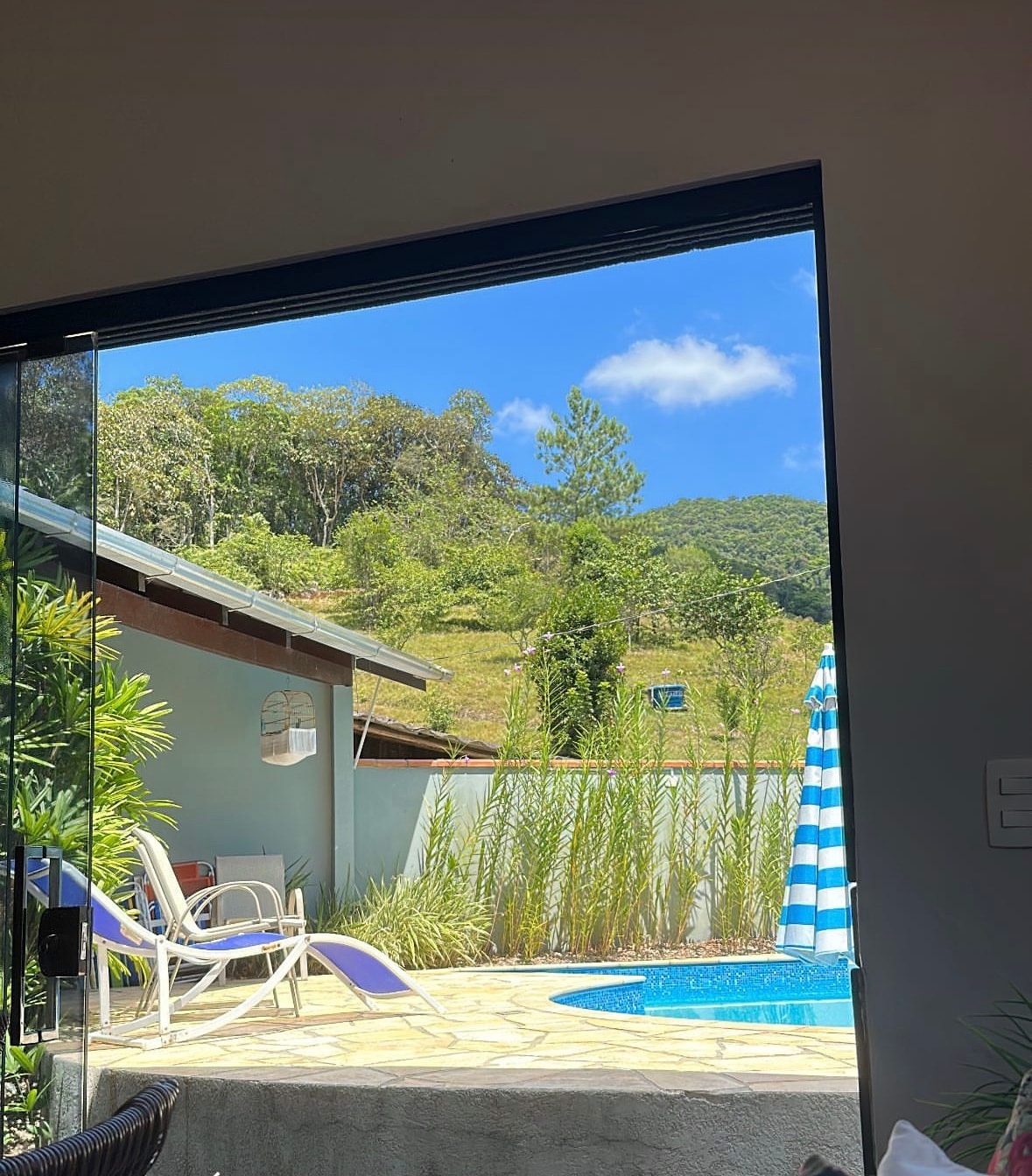 Casa tranquila e exclusiva, com piscina e uma deslumbrante vista para as montanhas. Este espaço foi pensado para proporcionar o máximo de relaxamento e conforto, sendo perfeito para descansar, trabalhar remotamente ou compartilhar momentos especiais com família e amigos. Disponibilizamos roupas de cama, mantas e toalhas. ⚠️ É IMPORTANTE ressaltar que há casas ao fundo com moradores fixos, que também utilizam o mesmo portão para acesso à garagem.