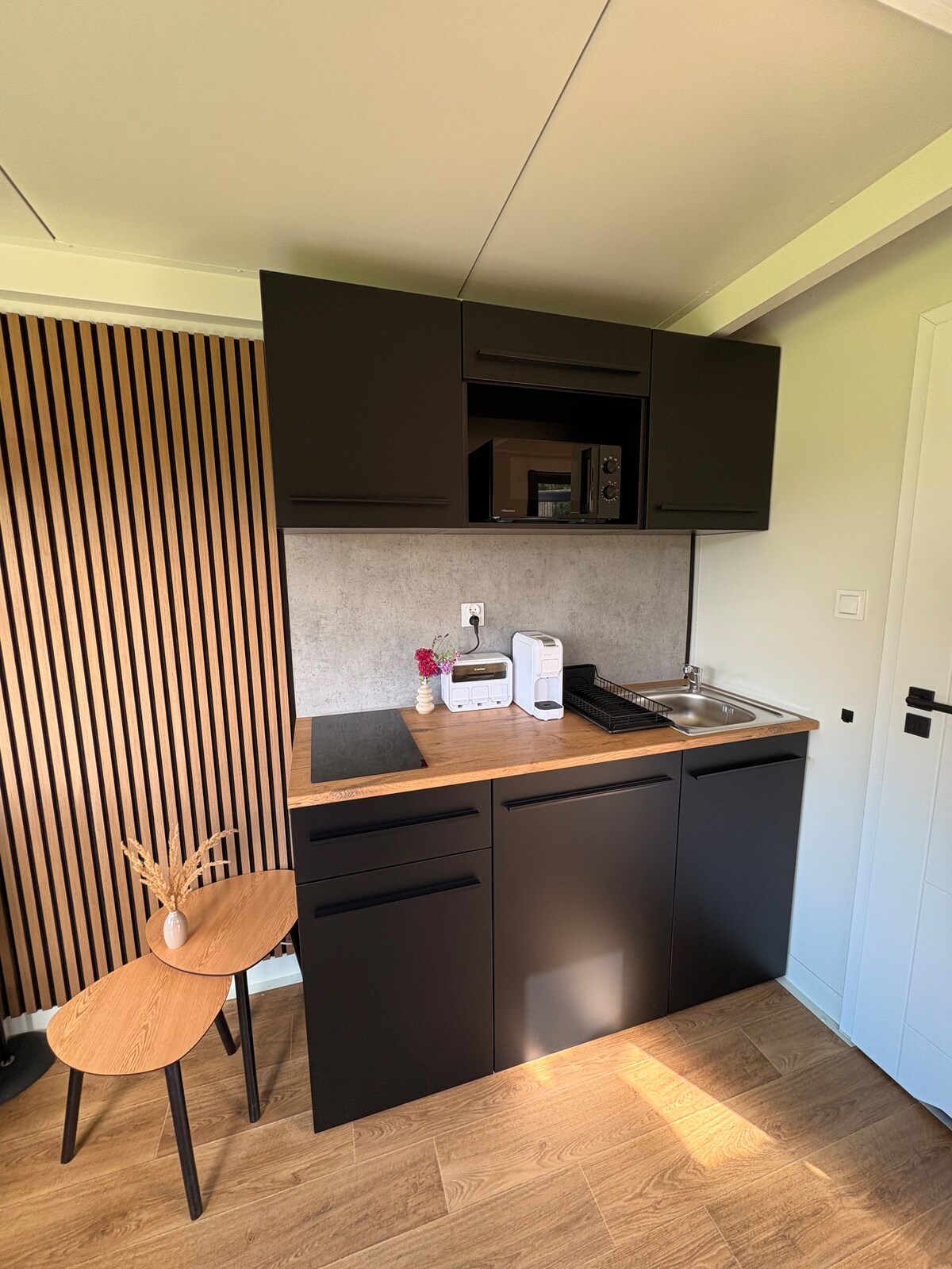 Nuestra cabaña de madera está situada entre dos ríos. Así que es un lugar maravilloso y muy tranquilo para alojarse. Abajo hay una habitación principal, con cocina moderna, nevera, lavadora, lavavajillas... hay una chimenea, que puede calentar toda la cabaña. La gran terraza es un lugar estupendo donde puedes disfrutar de tu taza de té o café. El jardín y los alrededores son un lugar estupendo para los niños. Y si el tiempo es malo, tal vez se alegrarán de columpiarse en la cabaña... :-)