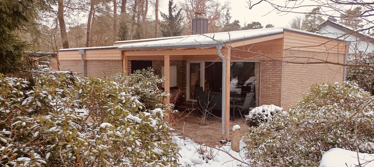 Bungalow con jardín y chimenea