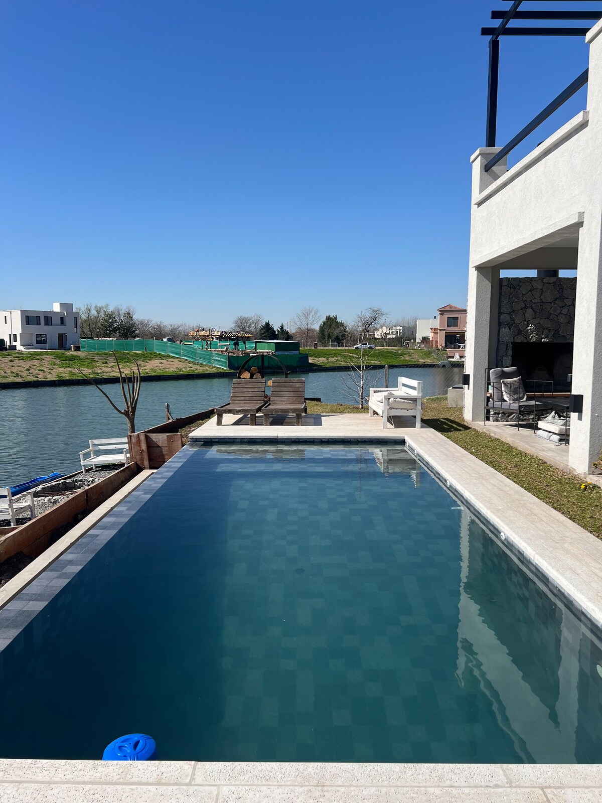 Casa nueva en el barrio cerrado Lagos del Norte con seguridad privada. El barrio cuenta con canchas de tenis, futbol, padel, plaza de juegos, además de un lago. La casa está completamente equipada. Es una casa que invita a sentirse cómodo. El jardín cuenta con árboles grandes, pileta, parrilla, asador, fogonero juegos y todo lo que necesites. Para las noches tenés un gran living que cuenta con una TV de 85 pulgadas con todos los servicios de streaming.