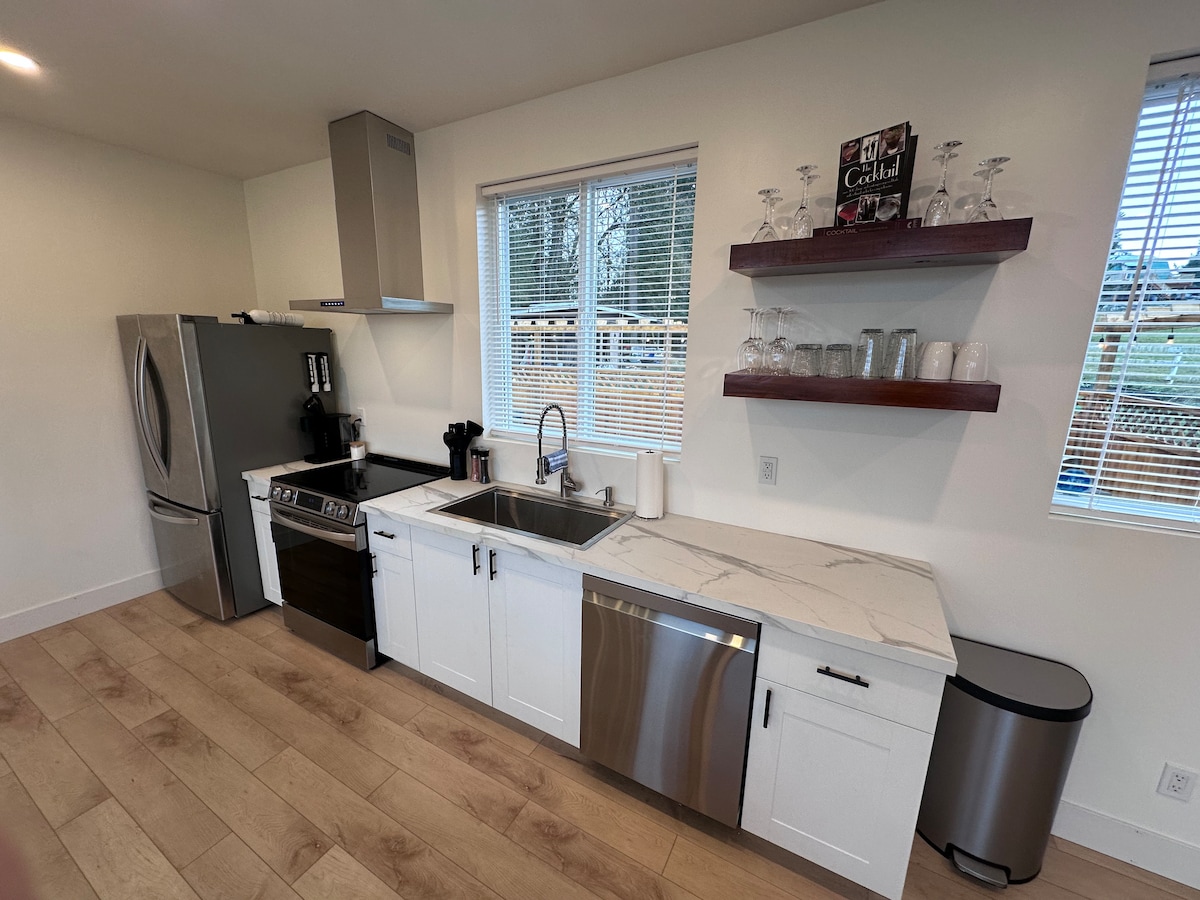 Experience the best of Cowichan Valley in our brand-new 2024 guest house. Nestled by Douglas Firs yet minutes from Hwy 1, 4 min from Shawnigan lake as well as the ocean and 5 to Shawnigan/Brentwood schools. Enjoy a chef’s kitchen with a gas double oven, retreat to your private, fenced yard. Grill on the BBQ or unwind by the fire table. With a King primary, Queen second bedroom, and Kerry Park across the street, it’s the perfect blend of luxury and island convenience. Your modern retreat awaits!