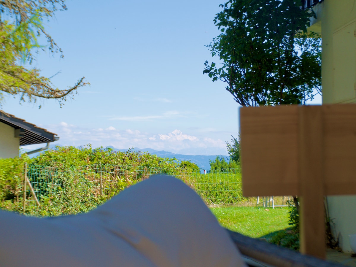 A cozy private mini Studio Aparment in a Swiss chalet with charm and a feeling of a warm hug. Spacious for 1-2 adults who like their own private bathroom, kitchen and garden. Equally family friendly for 3-4 guests where price matters without compromising quality or facilities. Amazing views of Mont Blanc from the garden, stunning sunrises/sunsets! Geneva airport only 29’ drive, Geneva/Lausanne 39’. Skiing only 8' to Basse Ruches, 20’ to Le Balancier, or La Givrine for cross country skiing.