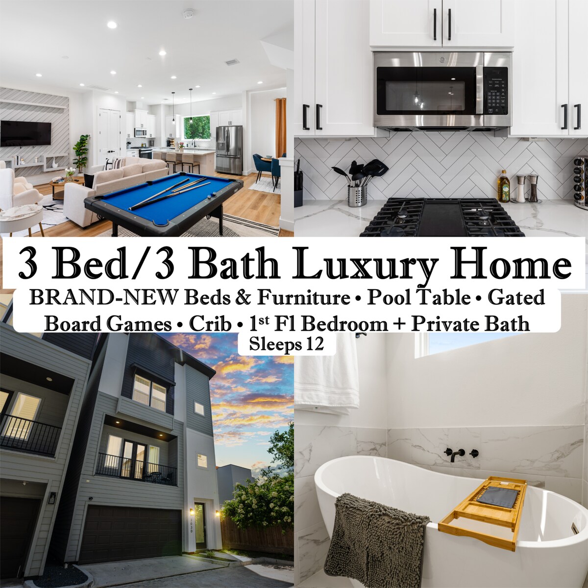Disfruta del lujo en nuestro 'Midtown Gem', un alojamiento elegante de 3BR/3.5BA ubicado en el vibrante corazón del centro de Houston. Esta espaciosa propiedad cuenta con un gimnasio en casa y una terraza en la azotea con impresionantes vistas al horizonte de Houston. A poca distancia a pie de los mejores restaurantes y a un corto paseo en bicicleta de bares eclécticos, ofrece la mezcla perfecta de relajación y exploración de la ciudad. Ideal para aquellos que buscan un refugio urbano de primer nivel, disfruta de comodidades modernas y fácil acceso al dinámico centro de Houston.