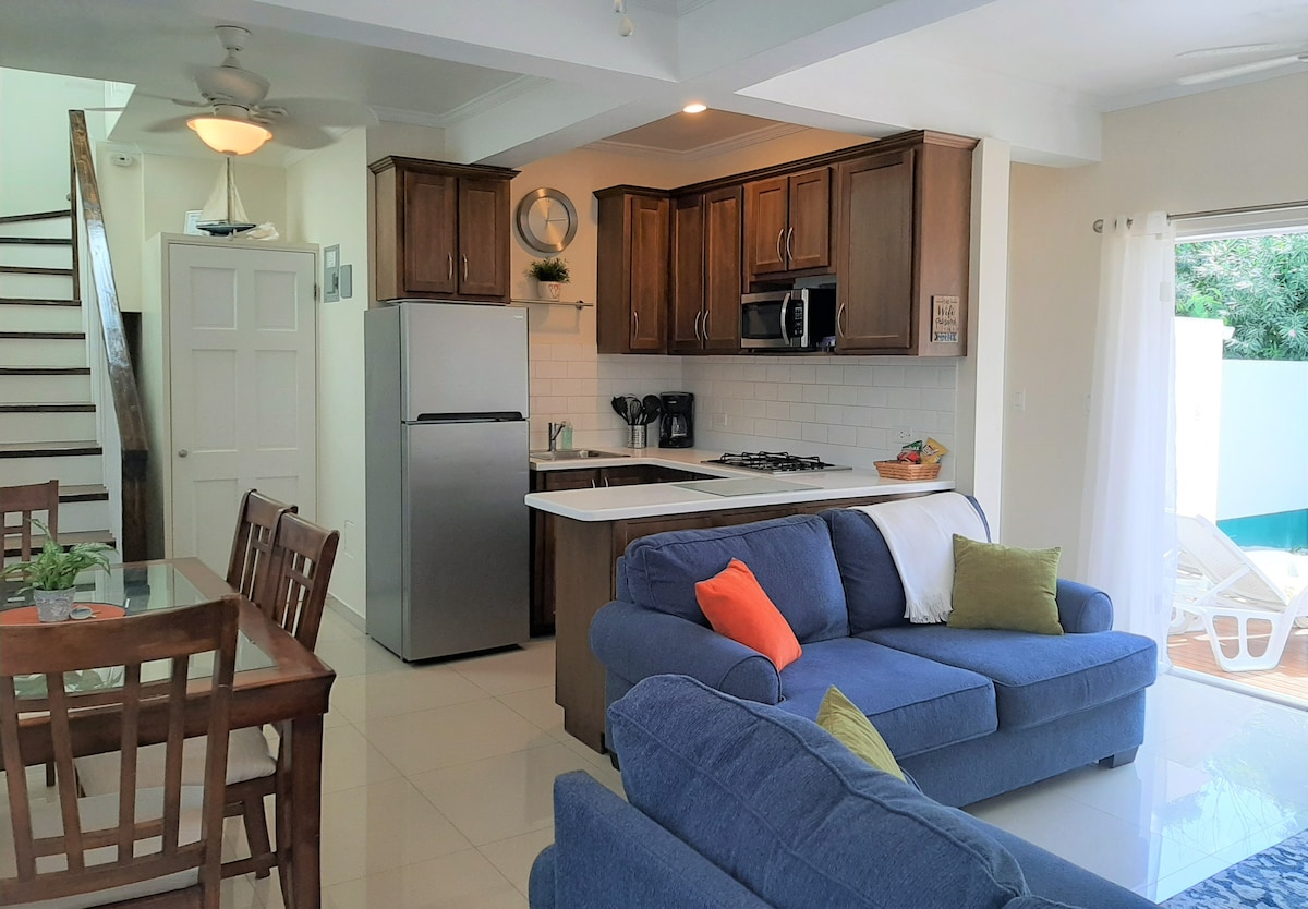 Sumérgete en la belleza natural de un pueblo caribeño local a solo 1-2 minutos a pie de Crabbe Hill Beach, una de las mejores playas de Antigua. Las puertas dobles privadas te llevan a un estudio de planta abierta en la planta baja con una cocina totalmente equipada, cama doble, baño con ducha y aire acondicionado. Disfruta de una copa de vino y de la puesta de sol desde el patio con una cama de día y barbacoa. También se incluyen tumbonas y sombrillas en Crabbe Hill Beach Rentals. Perfecto para un retiro creativo, un viajero solitario o una escapada romántica.