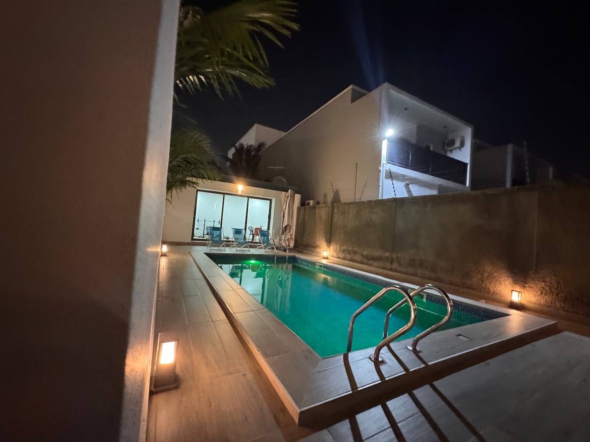 Disfruta de la comodidad de esta lujosa suite de un dormitorio, que ofrece una relación calidad-precio excepcional a solo 10 minutos en coche del aeropuerto, Osu, Accra Mall y Cantonments. Disfruta de restaurantes y tiendas cercanas a poca distancia a pie. La suite cuenta con una terraza en la azotea con vistas al aeropuerto, un comedor al aire libre en la planta baja y en la azotea, una piscina, wifi fiable, suministro eléctrico las 24 horas y seguridad. Con una ubicación céntrica en East Airport, en el corazón de Accra, está cuidadosamente diseñada para tu comodidad.
