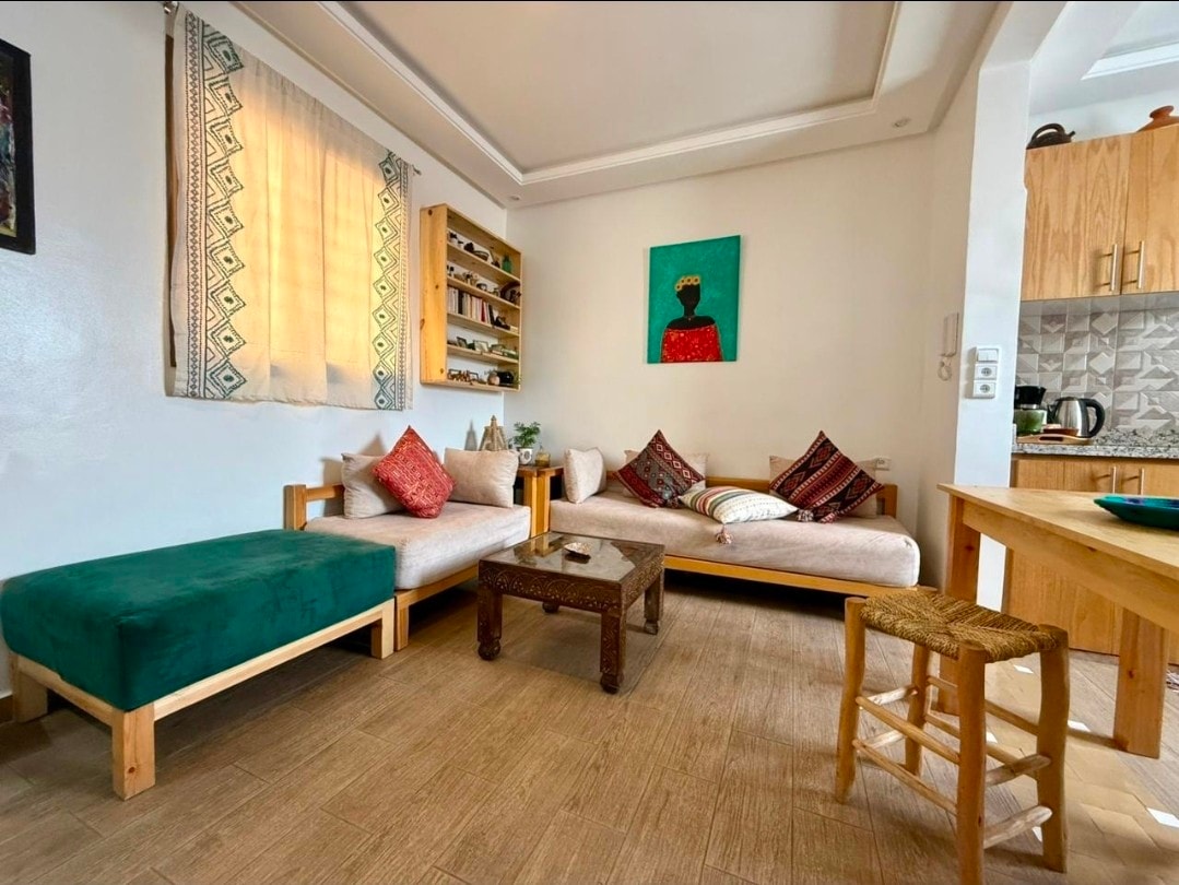 Dar Fouad es un nido oceánico ubicado en un lugar único y maravilloso. Estamos a 20 km de Esauira. Espectaculares e hipnóticas vistas al mar y a la inmensa bahía de Sidi Kaouki. Caminando a lo largo de 300 metros de camino en la arena te sorprenderá una inmensa playa salvaje. El apartamento se encuentra al final del bucólico pueblo de Ouassane a lo largo de una carretera asfaltada y 50 metros de fácil pista. Puedes ver el océano desde tu cama, aquí escucharás el soplar del viento y el respirar del mar.