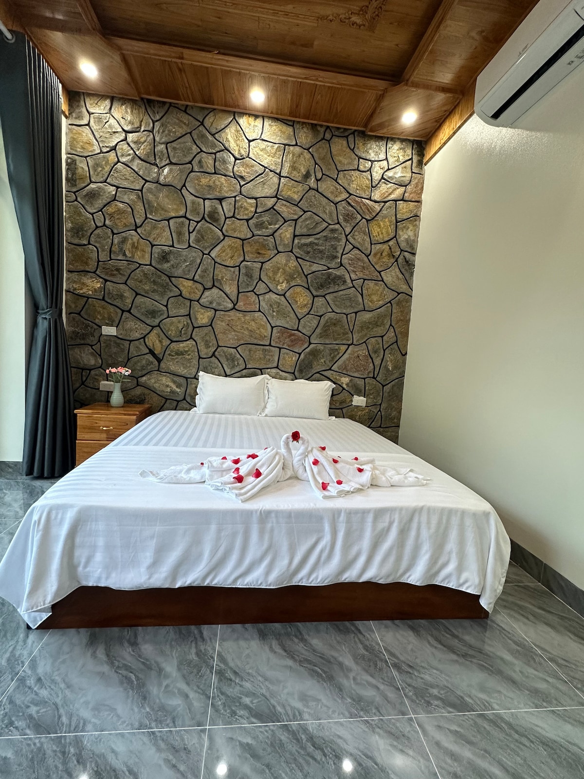 Gai Mountain Lodge ofrece una experiencia relajante en medio de la naturaleza, cerca de montañas y lagos, cerca de la cueva Thien Ton. Cada habitación tiene su propio jardín, muebles modernos, lo que la hace sentir como en casa. La espaciosa terraza es ideal para ver la puesta de sol, disfrutar de una bebida y disfrutar del aire fresco. El espacio es tranquilo, cerca de las atracciones de Ninh Binh, adecuado para turistas que quieran relajarse y explorar.