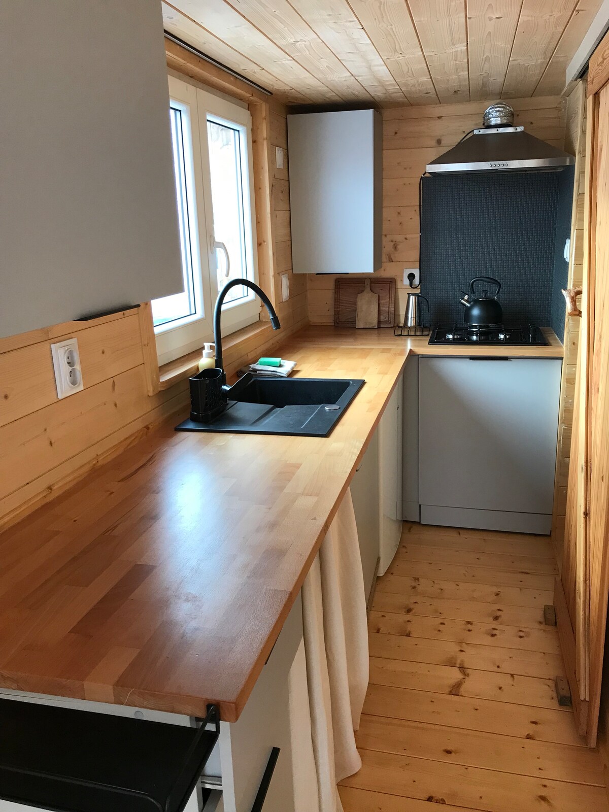 Te invito a la casa para parejas enamoradas. Este pequeño espacio está lleno del olor a madera y a los arbustos y pinos que crecen alrededor. Los ciervos y un gran número de diferentes especies de aves son visitantes habituales de los campos circundantes. Acceso ilimitado a Internet en el sitio. ¡¡¡Lo recomiendo de corazón!!!