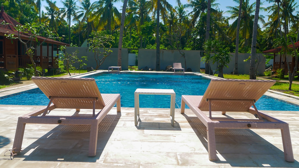 Este alojamiento cuenta con un restaurante, piscina al aire libre, bar y jardín en Gili Trawangan. Con habitaciones superiores, esta propiedad también ofrece a los huéspedes una terraza solárium. En el hotel, todas las habitaciones están equipadas con aire acondicionado y TV de pantalla plana. La playa de Gili está a 1,6 km de esta propiedad, mientras que Turtle Beach está a 1,7 km.
