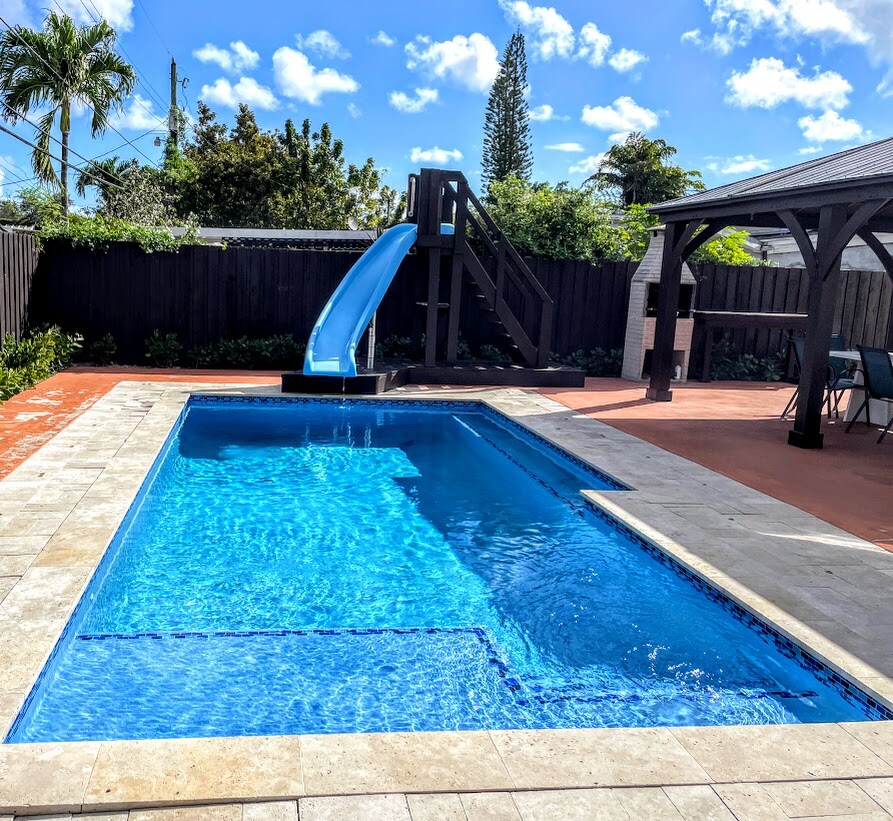 Piscina climatizada con tobogán, cenador y parrilla en Magnolia House