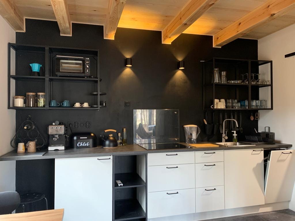Una casa moderna situada en el bosque ofrece condiciones ideales para relajarse en la naturaleza. Diseñado en un estilo minimalista, con grandes acristalamientos, que ofrecen hermosas vistas al bosque. La casa está equipada con todas las comodidades necesarias, como una chimenea, una cocina totalmente equipada y un baño. En el exterior hay una terraza con zona de barbacoa y un bosque donde puedes relajarte y observar la vida silvestre. Es un lugar ideal para personas que buscan paz y cercanía a la naturaleza.