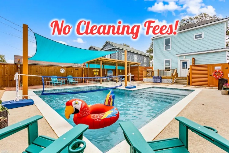 Pool Home Steps from the Beach! Historic Galveston charm with private pool, ocean views, and off-street parking. Fire pit ! Propane provided. Smart TVs, Weber grill, and all beach gear provided — chairs, wagon, sand toys included. Perfect for families, friends, or dog-friendly getaways. 75 inch smart TV in the Living room great for Movies & sports events. 55 inch smart tvs in bedrooms. Lots of comfortable patio seating. Pingpong table and lots of books and fun Games:) Kitchen is well equipped