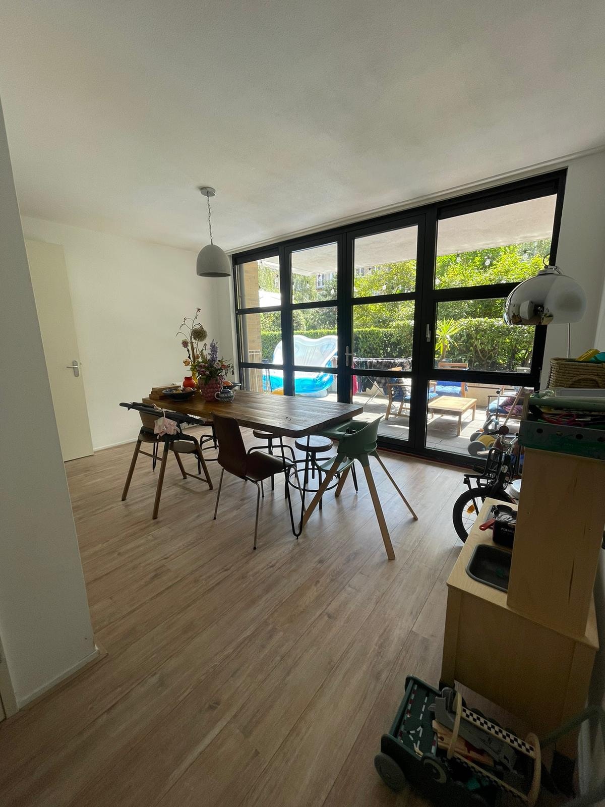 Alquilamos nuestra moderna casa adosada recién reformada con jardín. A solo 850 m del mar de Greveling. ¡Incluye 2 bicicletas! En la planta baja hay una gran sala de estar abierta con cocina bien equipada. Una escalera de caracol conduce al primer planta. Allí hay 2 dormitorios (uno tiene una cama doble grande, el otro tiene 2 camas individuales) y un gran balcón. Cuarto de baño con ducha e inodoro en la planta baja más 1. aseo en la primera planta. Ambos con ventanas; completamente renovados en 2022.