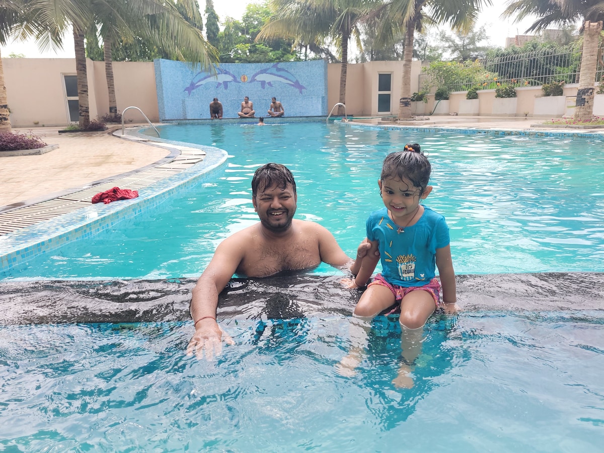 500 Sq. ft. 1-BHK Fully Furnished Independent Property. Distant from the hustle & bustle of the city centre, this is a perfect place for a peaceful retreat. Nestled inside a popular Residential Complex located very close to Beach, the flat is tastefully decorated & embellished with practical gadgetry. * Perfect place for kids & Nuclear Families * Solo Travellers won't complain * Great Option for unmarried Couples * Lots of fun spaces - Resort,Swimming Pools,Restaurants,Garden & Play Area etc.