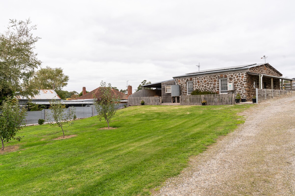 Esta encantadora y totalmente única casa de mineros de piedra sólida y madera de estilo de 1860 ofrece paz y tranquilidad. Ubicada entre imponentes eucaliptos y abundante vida silvestre nativa, incluidos nuestros canguros y cucaburras residentes, esta propiedad es el destino perfecto para una escapada romántica. Situada en Gordon, en las hermosas Tierras Altas Centrales, la casa de campo está a poco más de una hora en coche del centro de negocios de Melbourne y a 1,4 km a pie ligeramente elevado para cenar en el moderno Gordons Cafe o en el pub.