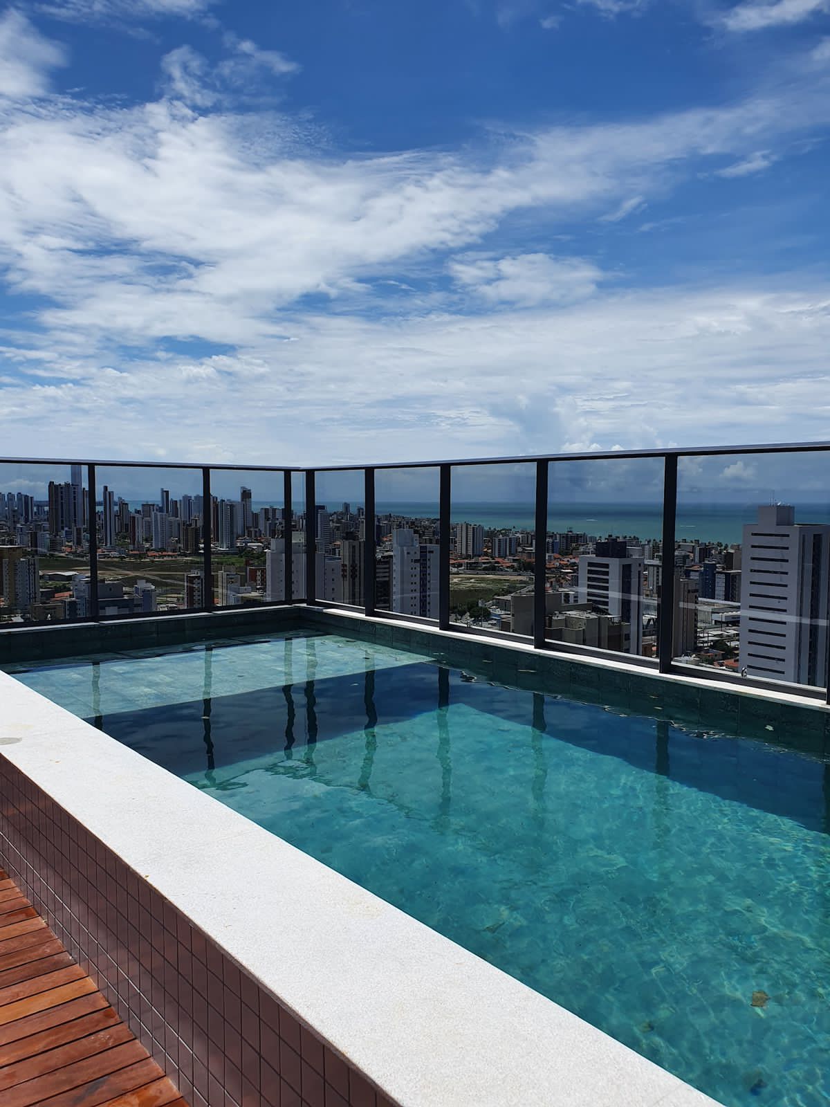 Apartamento novo em prédio pé na areia, de frente para o mar do Bessa, com terraço privativo e piscina compacta, ideal para momentos de relaxamento! O espaço é automatizado com Alexa e acomoda confortavelmente 4 hóspedes, sendo 100% equipado e funcional. Ideal para quem busca conforto, localização estratégica e uma ótima experiência!