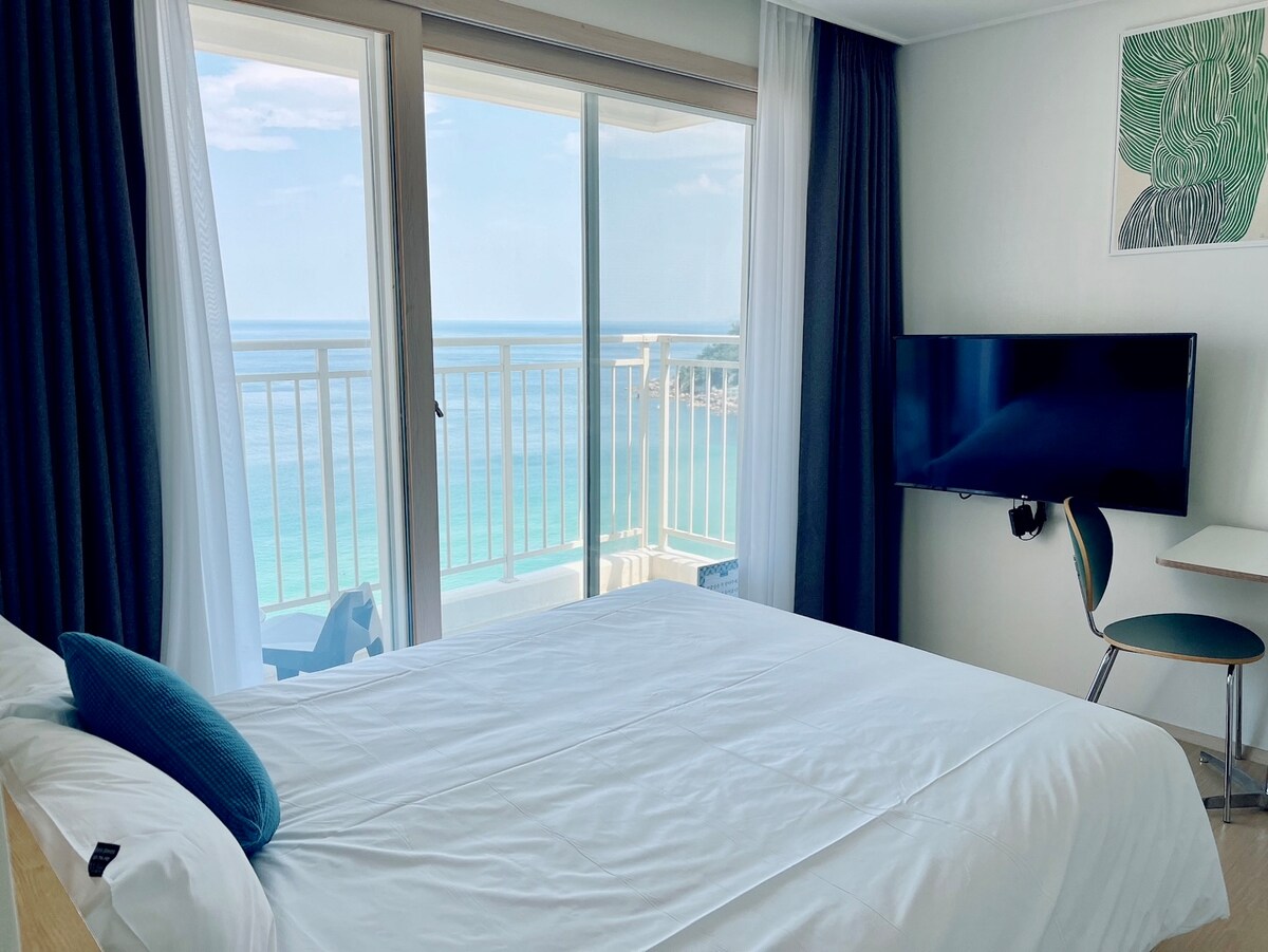 ¡El mar frente a la meca del surf, Jukdo! A 30 segundos a pie, Acuéstese en la cama y abra la cortina para disfrutar del sonido de las olas y el amanecer, y sienta el brillo deslumbrante de las olas y el café en la terraza. Las olas tranquilas y la brisa marina refrescante Disfrute de un refugio en una playa encantadora. Este alojamiento tranquilo cuenta con una vista incomparable del litoral natural que se puede disfrutar desde la cama, y se conecta directamente con la playa soleada que se encuentra a solo unos pasos del vestíbulo. Para aquellos que buscan la paz, el descanso en esta habitación Moka preparada con la intención de descansar Experimente vacance. Mientras tanto en tu propio camino, ¡¡¡A tu propio ritmo, ¡¡¡Paso a paso, con naturalidad ¡¡¡Ahora es tu turno de caminar!!! Después de haber estado aquí, es una habitación simple y elegante donde puedes dar la bienvenida a un mañana con el cambio como las olas y el deslumbramiento del océano.