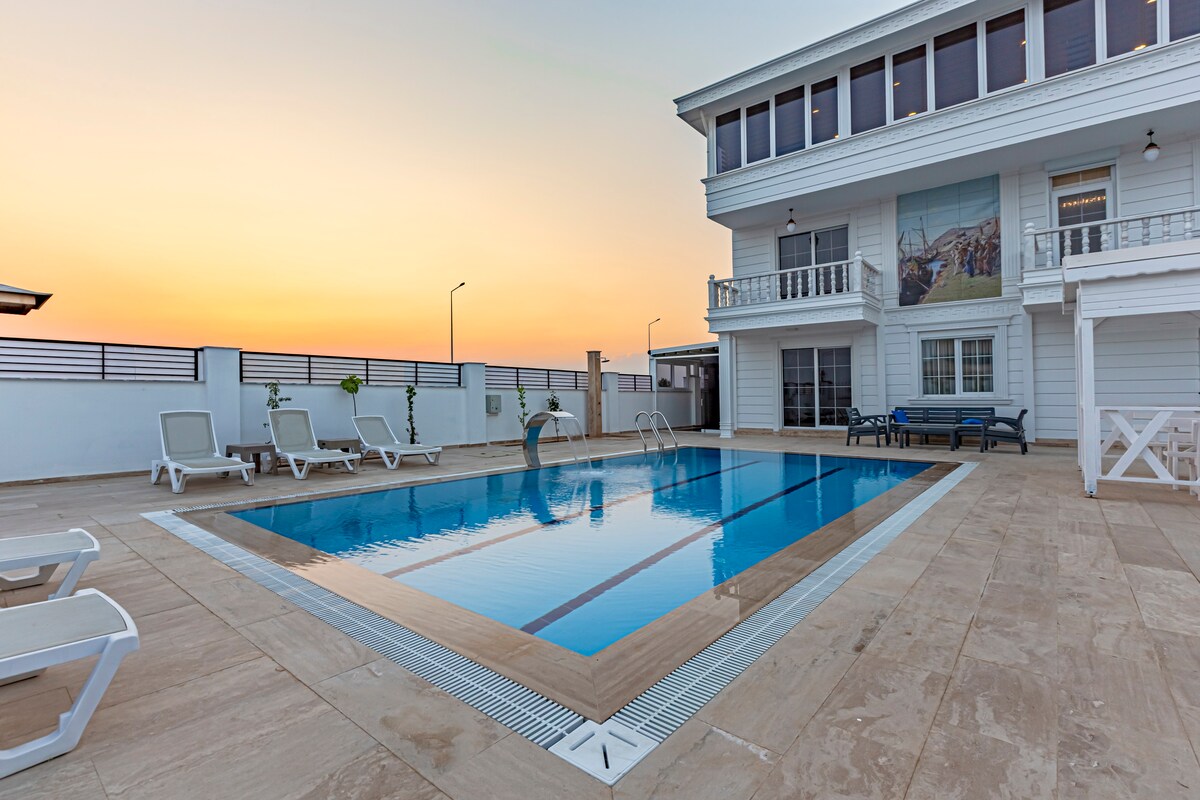 High quality residence complex with 24/7 security. It is walking distance to the Lara beach. This residence has everything you need for a first class luxury vacation.Children's playground, indoor heated pool and outdoor pools, Turkish bath and sauna. Supermarkets and restaurants are very close.All apartments have their own high-speed internet. Migros supermarket-300 m Restaurants-500 m Lara Beach-800 m TerraCity mall-10 km The Land of Legends-14 km Kaleiçi City Center-18 km