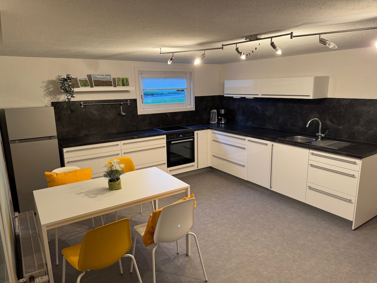 Acogedor apartamento en una ubicación tranquila Bienvenido a nuestro acogedor apartamento en el idílico pueblo, ideal para relajarse y hacer excursiones. ¡Las familias son de bienvenida! Descubre castillos, ruinas y el emocionante Heidengrabenzentrum. Puedes disfrutar de numerosas rutas de senderismo, como una ruta de senderismo de primera calidad, rutas ciclistas, así como piscinas al aire libre y cubiertas. Relájate en spas cercanos. Te espera la combinación perfecta de silencio, naturaleza y aventuras. ¡Nos vemos pronto!