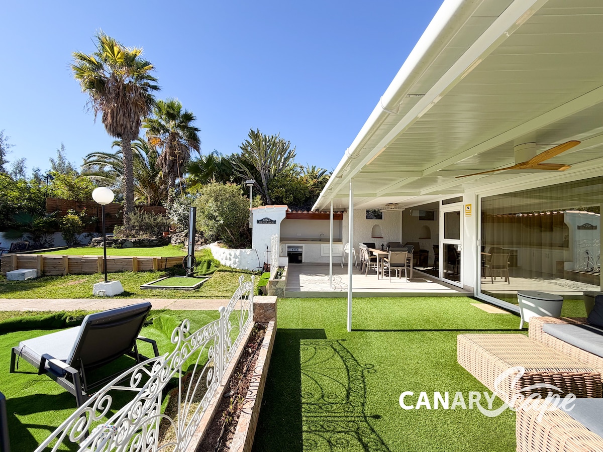 Casa agradable totalmente reformada en primera línea de playa, con solarium y vistas al mar. Con ubicación privilegiada y resguardada del viento Alisio que sopla en la Zona. Situada en la avenida o paseo de la Playa del Burrero donde podrás bañarte, pescar, hacer surf, windsurf o kitesurf. La casa es ideal tanto para cortas estancias (por su proximidad al aeropuerto) como para largas estancias ya que está muy bien comunicada tanto con la capital como con la zona turística del sur de la isla.