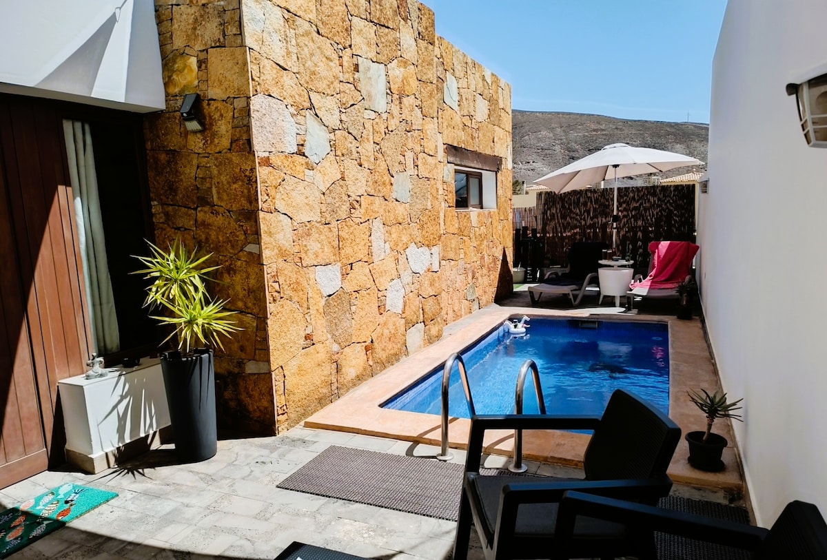 ¡¡Bienvenido a Villa Majada Del Aceitun!! Desconecta de la rutina en este alojamiento único y relajante. Ven a descubrir esta práctica villa donde todo ha sido pensado para ayudar a relajarse y desconectar en un entorno muy tranquilo. Disfrutarás de un patio acogedor para comer con los amigos o la familia. La piscina de 4 x 2 metros es el lugar perfecto para refrescarse del calor de Fuerteventura. El espacio creado alrededor de la piscina invita a tomar un descanso al sol o a la sombra.
