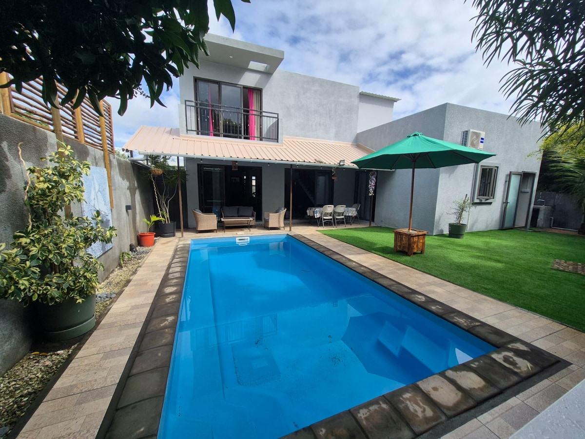 Venez découvrir notre villa à Grand Baie ! Moderne et spacieuse, nous serions heureux de vous y accueillir. Elle dispose de 3 chambres climatisées dont une suite parentale (lit 180 cm & 2 de 160), 3 salles de bain avec WC, Smart TV, Cuisine entièrement équipée avec lave-vaisselle et Nespresso, espace buanderie, wifi. L'espace extérieur a été aménagé de façon à ce que vous puissiez passer des vacances inoubliables ! Les commerces, restaurants et plages sont à proximité en voiture environ 5 min.