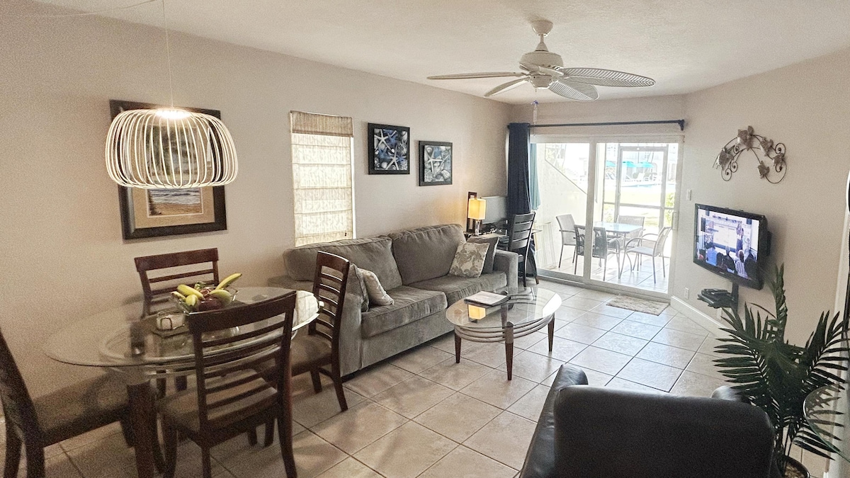 ¡Hermoso apartamento de 2 habitaciones en Seven Mile Beach! Cocina totalmente equipada, que incluye lavadora y secadora en la unidad, y TV de pantalla plana. Los detalles de este encantador espacio te harán sentir como en casa. ¡Una espaciosa sala de estar y comedor de planta abierta (y un balcón privado con mesa/sillas) hacen que sea fácil disfrutar de comidas relajándose con amigos/familiares dentro o fuera! ¡El centro vacacional ofrece una piscina, una cancha de tenis y un pequeño gimnasio!