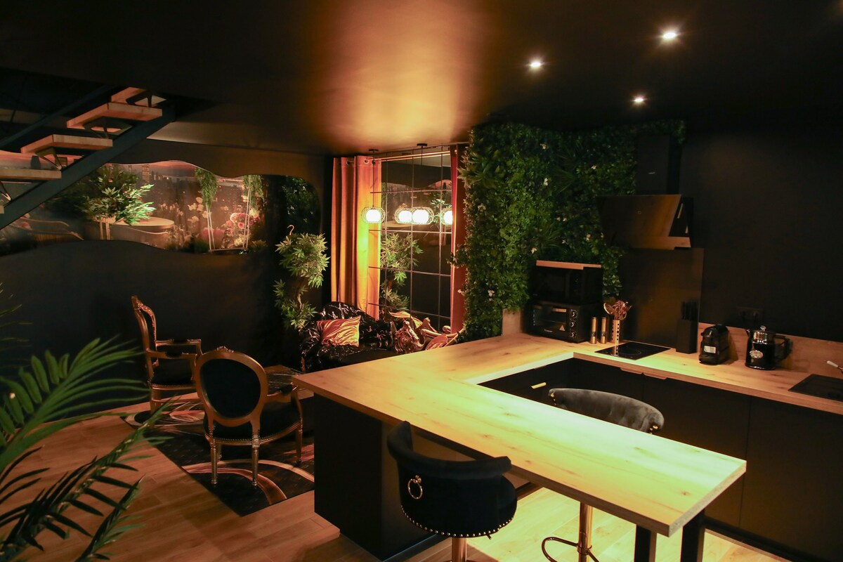 Descubra nuestro elegante loft de lujo, un verdadero nido de refinamiento y pasión, diseñado para una escapada inolvidable. ¿Quieres reavivar la llama o sorprender a tu otra mitad? Disfrute de una noche romántica en un entorno excepcional, adornado con equipos y accesorios de alta gama Para sublimar su experiencia, también hay opciones adicionales disponibles. Si es para darse un gusto, ¡lo mejor es hacerlo sin compromisos!