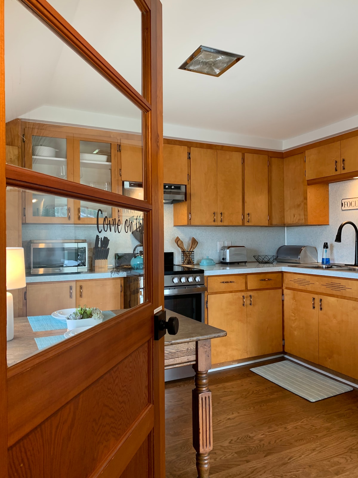 Close to it all, yet off the beaten path & just a couple blocks from downtown. Kitchen, dinning room with farmhouse table that seats 8+, Bathroom with shower & vintage style tub, living room & master bedroom also on main floor. Upstairs offers 2 additional rooms & sleeping space! Yard with grill & deck to enjoy! Need more space for your group?! We now also own Jimmy's Place - located just 2 houses down and around the corner and can sleep another 8 people!