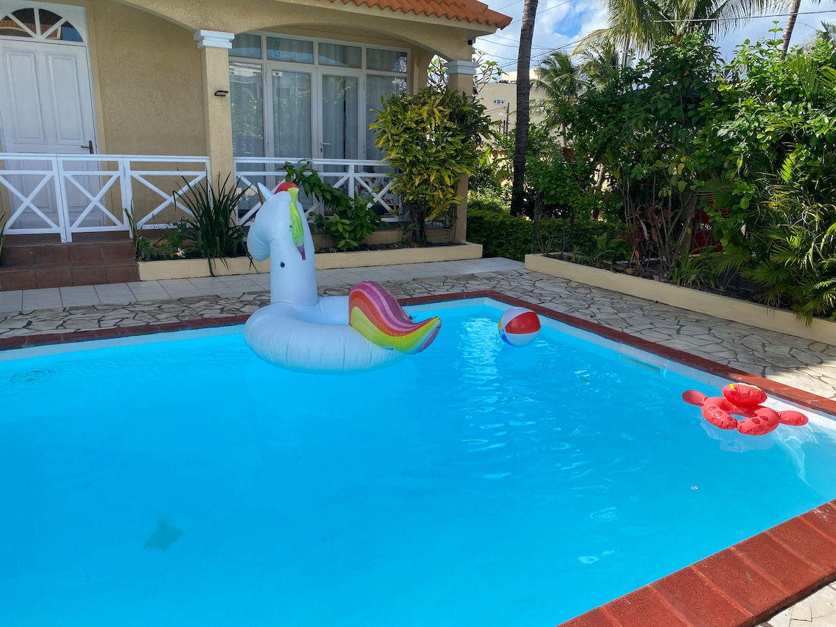 Información sobre la casa: La villa se encuentra en un complejo familiar protegido por una puerta eléctrica. Está en el mejor lugar de Pointe d'Esny. Puedes disfrutar de un acuario natural enfrente y una hermosa playa. El alojamiento La casa forma parte de un complejo, pero cada unidad tiene su privacidad. La unidad cuenta con 2 dormitorios, 2 baños, una cocina bien equipada, una lavadora, una terraza, una zona de barbacoa en el jardín y un acceso privado a la playa que está a 1 minuto a pie.