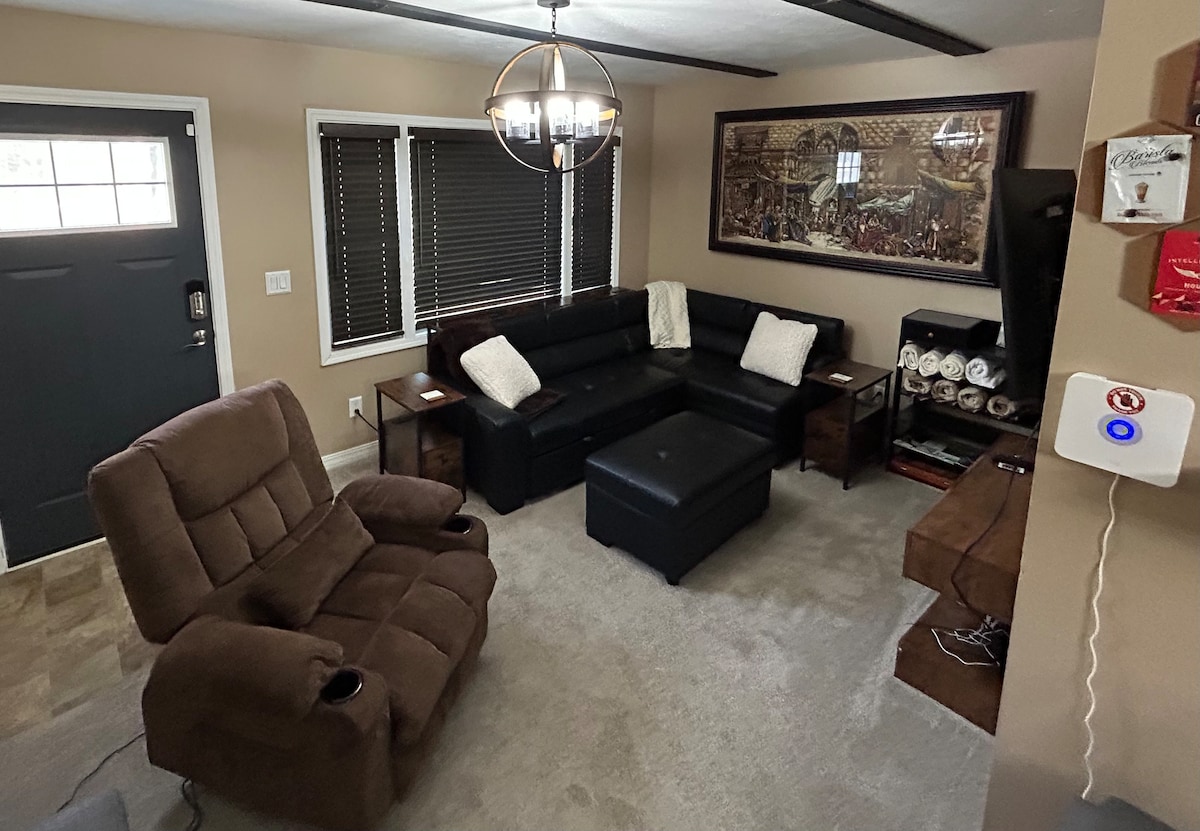 Justo al lado de la autopista principal US-131, esta casa recién remodelada cuenta con una bañera de hidromasaje para 5 personas en un hermoso patio al aire libre con vistas a un enorme patio trasero. ¡Terra Sol está equipada con comodidades modernas que incluyen aire central, sala de estar grande con capacidad para 6 personas! ¡Disfruta jugando en la habitación Sol, una comida casera desde la espaciosa cocina! A 10 minutos del centro de Grand Rapids y a solo 15 minutos del Aeropuerto Internacional GRR Ford, todo lo que necesitas está a tu alcance.