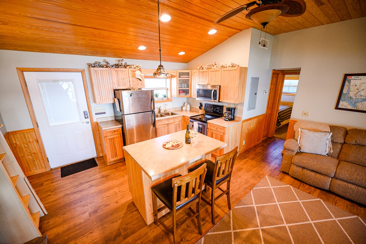 Con el acertado nombre de «The Q'Whack Shack», nuestra pintoresca casa frente al lago es el alojamiento perfecto para un fin de semana encantador o un alivio de una semana. Con una ubicación ideal en el corazón del lago Seminole, The Q'Whack Shack es un escondite de ensueño para los entusiastas del agua. Disfruta de paseos en barco, pesca con caña, una variedad de deportes acuáticos (esquí, tubing, etc.), pesca de lubina de primera clase y caza de patos con cómodo acceso al muelle privado a solo unos pasos de la puerta trasera. Restaurantes frente al mar y otros suministros a solo un rápido paseo en barco/coche.