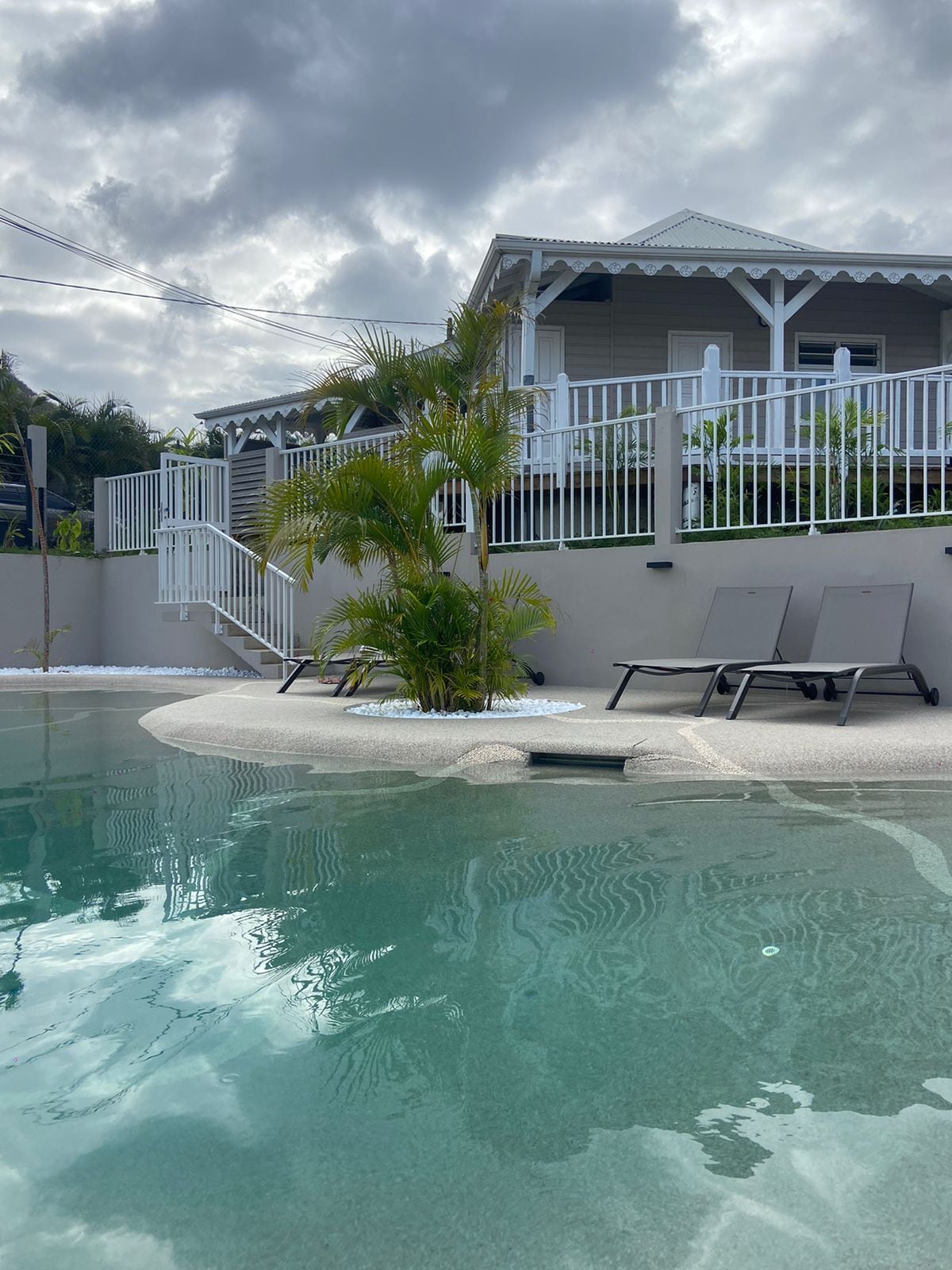¡Venga a descubrir Green Paradise! Un alojamiento idealmente situado en el sur de la isla en el municipio de Diamant. -una sala de estar con aire acondicionado que dispone de un sofá cama, un televisor con acceso a Netflix - una cocina totalmente equipada (placa de inducción, nevera, lavadora, microondas) - una habitación con aire acondicionado en la planta superior con una cama king-size - un cuarto de baño con una ducha italiana y un inodoro independiente - una terraza amueblada con vistas al mar/montaña impresionantes - una piscina infinita
