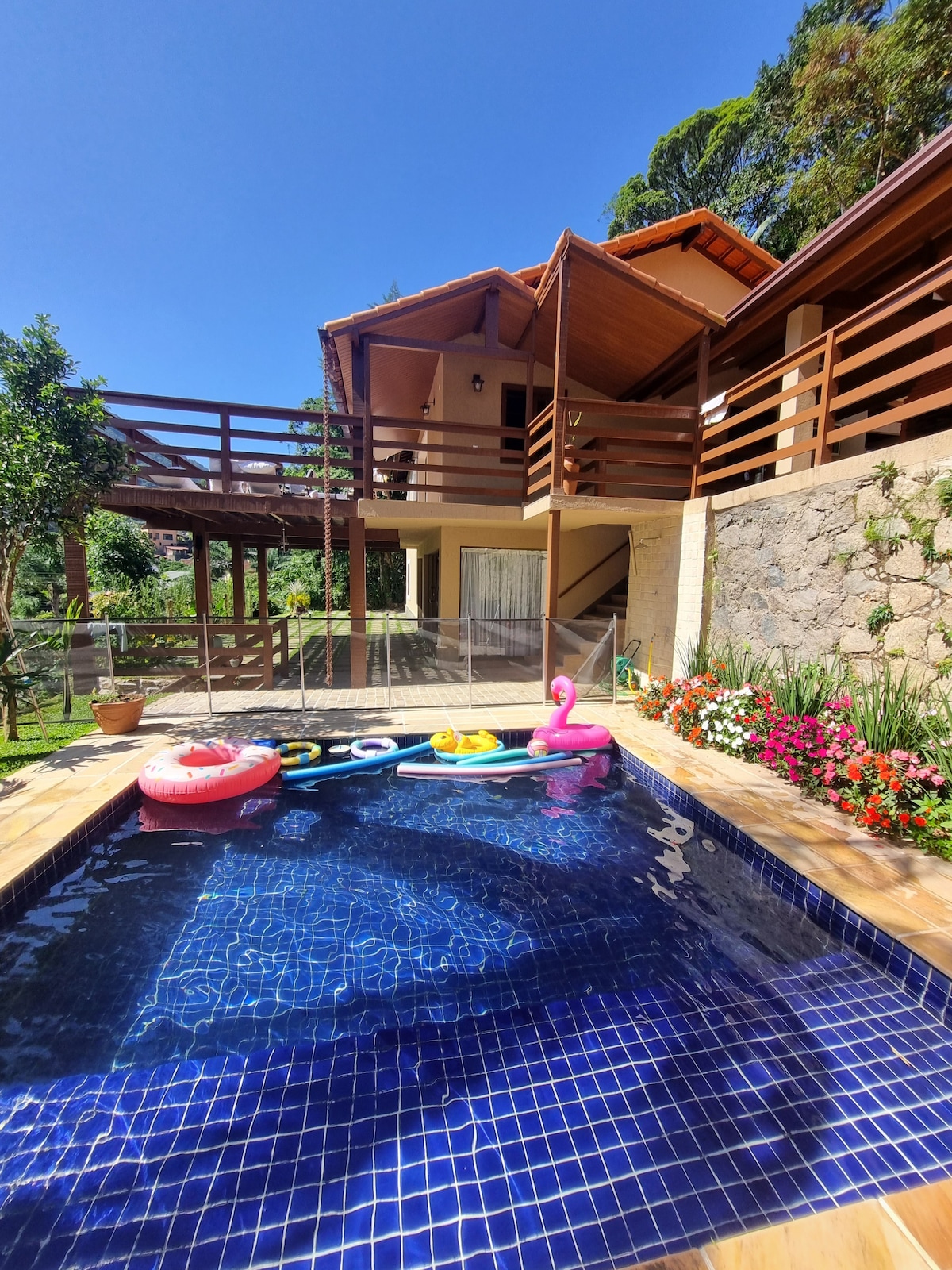 @experiencia.homm ofrece una casa con el encanto de las montañas de Río de Janeiro. Estamos ubicados en un condominio, lo que garantiza la seguridad y la tranquilidad de nuestros huéspedes. Tenemos toda la estructura para una estadía perfecta, con pileta, sauna, parrilla y una hermosa vista de las montañas. ¡Chimenea, sonido ambiental y una habitación muy acogedora para los días más fríos! También tenemos un horno de leña para pizza, un gran jardín y un fogón en el área al aire libre que te hará disfrutar del verdadero clima de montaña.