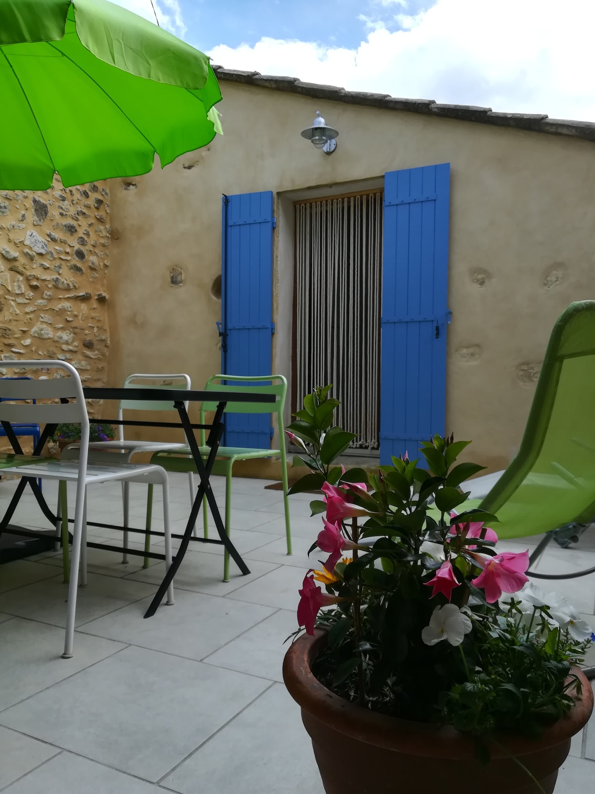 En Drôme provençale, al lado de Grignan, entre viñedos y lavanda, nuestra casa es la única de la propiedad. Se encuentra en la planta superior, para cuatro adultos, contiguo a la masía de los propietarios. Sala de estar de 48 m2, con cocina abierta totalmente equipada, zona de relajación con TV de 127 cm, aire acondicionado. Suite principal de 35 m² con ducha italiana, lavabo doble, aseo independiente, aire acondicionado. Altillo de 30 m2. Las dos camas son de 160x200. Terraza privada con barbacoa Weber.