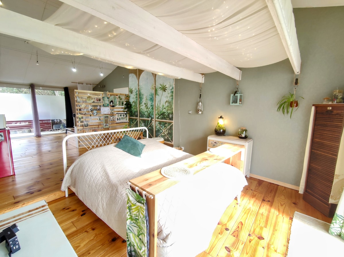 Privatiza toda esta casa; pensada como un paréntesis fuera del tiempo, esta mezcla autenticidad y comodidad moderna Un ambiente íntimo, un espacio de bienestar privado: un verdadero nido para reponer energías; con sauna y bañera de hidromasaje. Para una ocasión especial o simplemente tomarse el tiempo para reunirse, cada detalle está pensado para ofrecer una experiencia única, suave y relajante. Aquí todo invita a la desconexión, con el placer de saborear el momento presente.