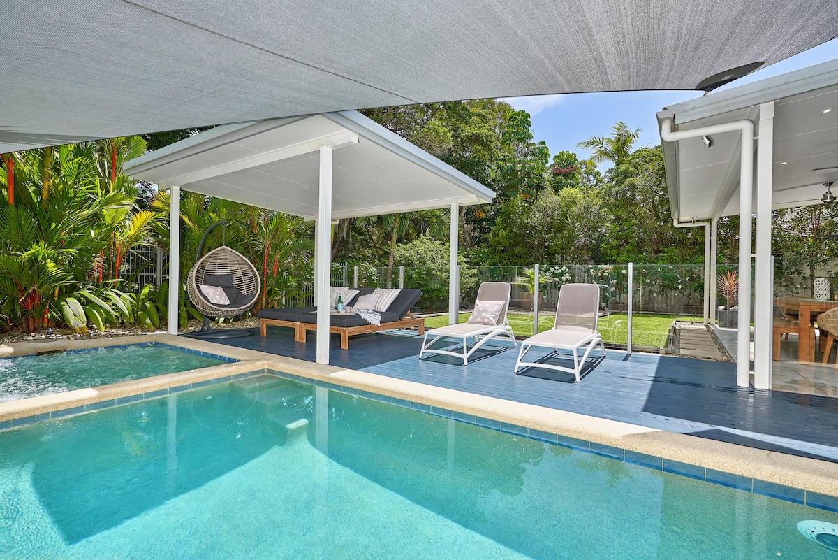 «BASK» es un espectacular y espacioso refugio vacacional de 4 dormitorios recién amueblado, a menos de 4 minutos a pie de la playa y de los restaurantes y bares en el corazón de Palm Cove. Este oasis tropical cuenta con múltiples salones y retiros interiores y exteriores, piscina climatizada de 15 m y piscina-spa de 3 m x 3 m con un calentador eléctrico a 34 grados para los meses de invierno y climatizada con energía solar en los meses de verano. Si buscas la casa de lujo perfecta para relajarte con familiares y amigos, no busques más.